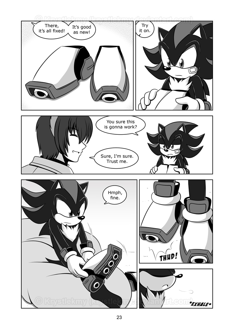The short story about Shadow the Hedgehog, his rocket shoes are broken so suddenly.