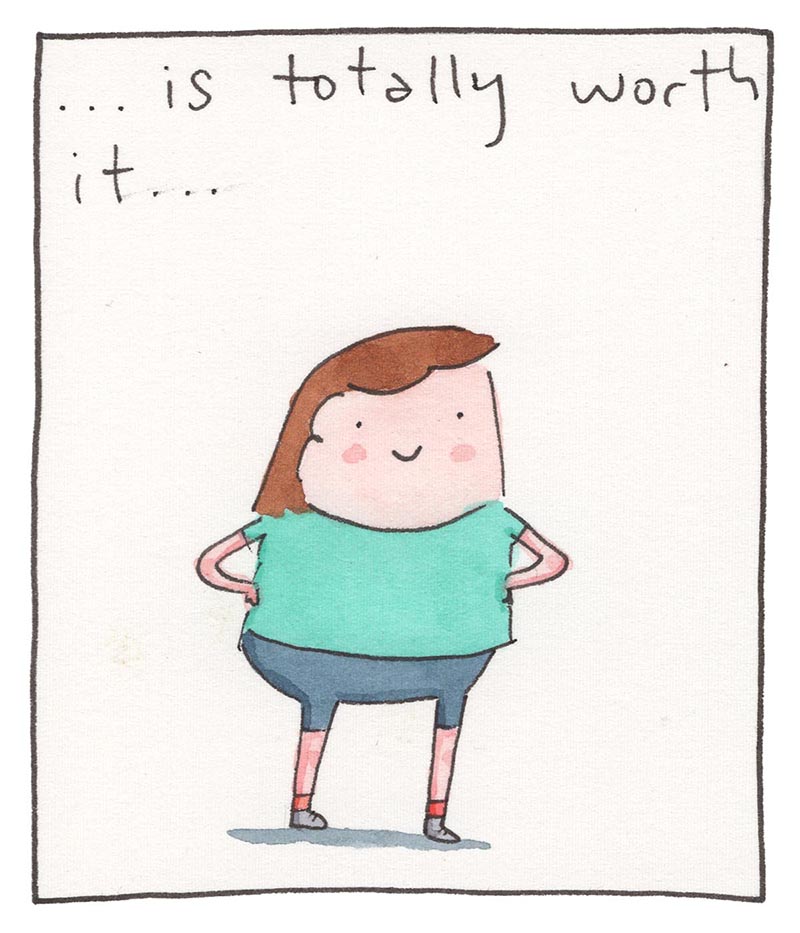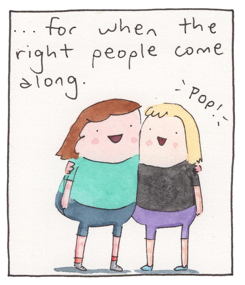 My inspiration comes from just bein’ alive, feelin' feelings, and drawing about 'em. Every comic is made the old-timey way in watercolor, then put online the new-timey way for humans like you to read!