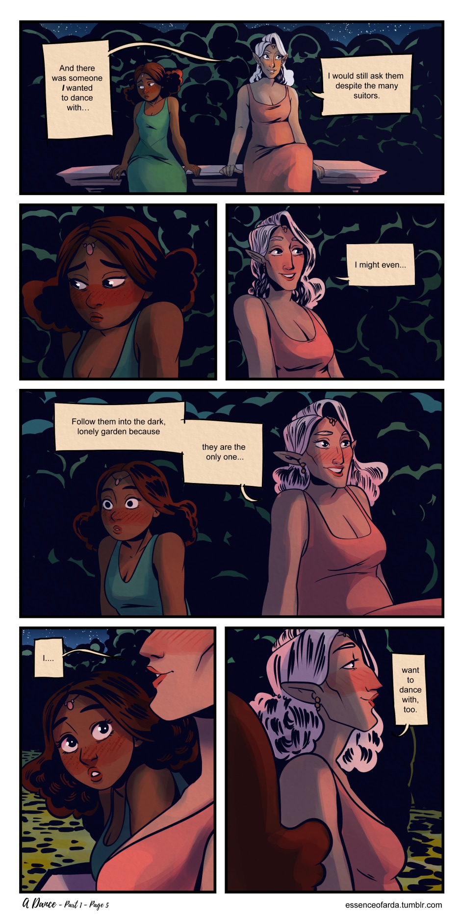 This is the most recent update I did over on tumblr, about a year and a half ago... I've been feeling inspired to work on this comic some more, tho! Let me know if you'd be interested in reading more about these two gals :))
