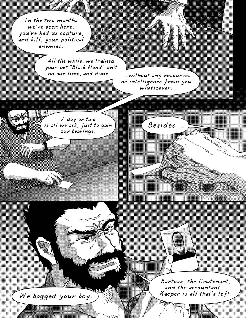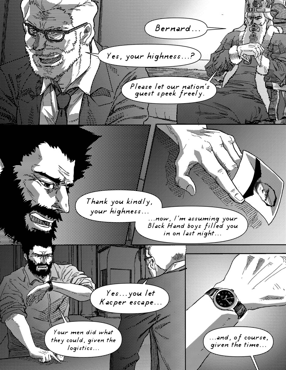 Two military intelligence agents, posing as clerical workers, are caught in a terrorist attack in a swanky Chateau. Find out how the amalgamation of their actions, and experiences, get them out of a night filled with crazed insurgents, desperate monarchs, manipulative bureaucrats, and kooky religious zealots!