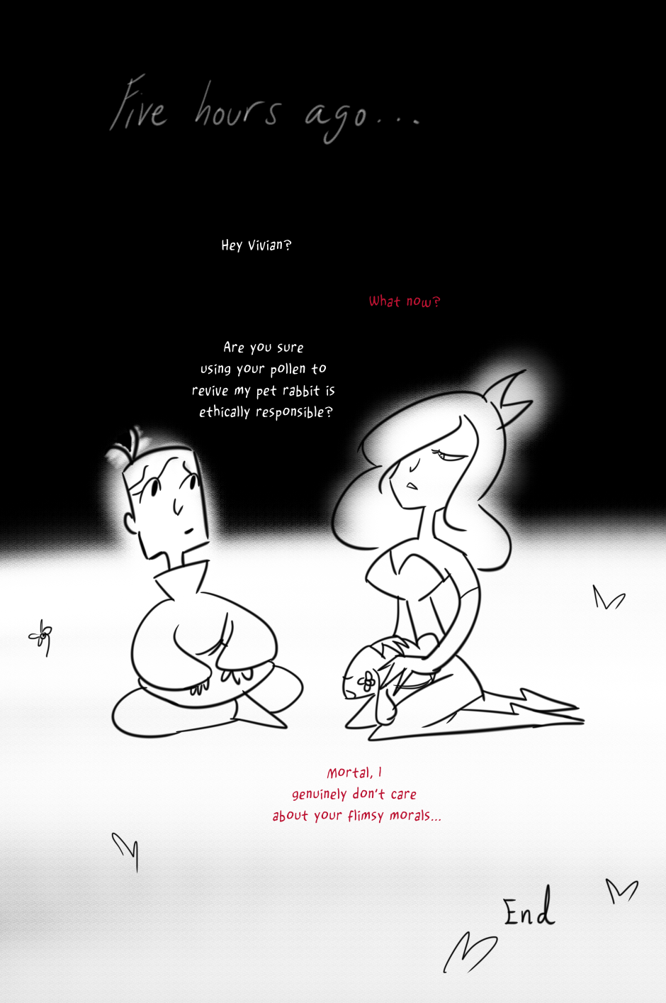 Who expected that fully sketching a black canvas white and then using the eraser for the line-art was such fun, but also so exhausting...