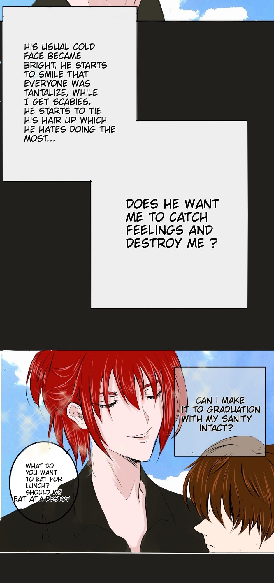 so the high school era will end in this chapter (but I promise it'll get better) ^^ I'm gonna miss drawing their school uni, that's my fave color black and red. I'm so excited for the upcoming chapters!!! Also, support my other webtoon that is in webtoon app titled "Joust Zone" ARIGATO~