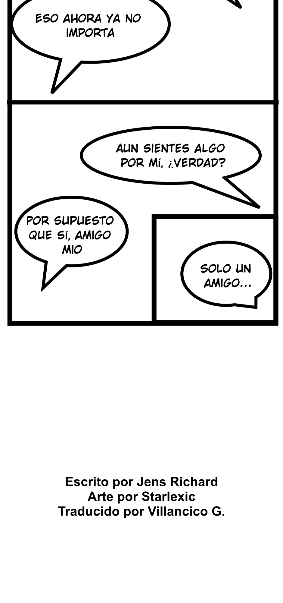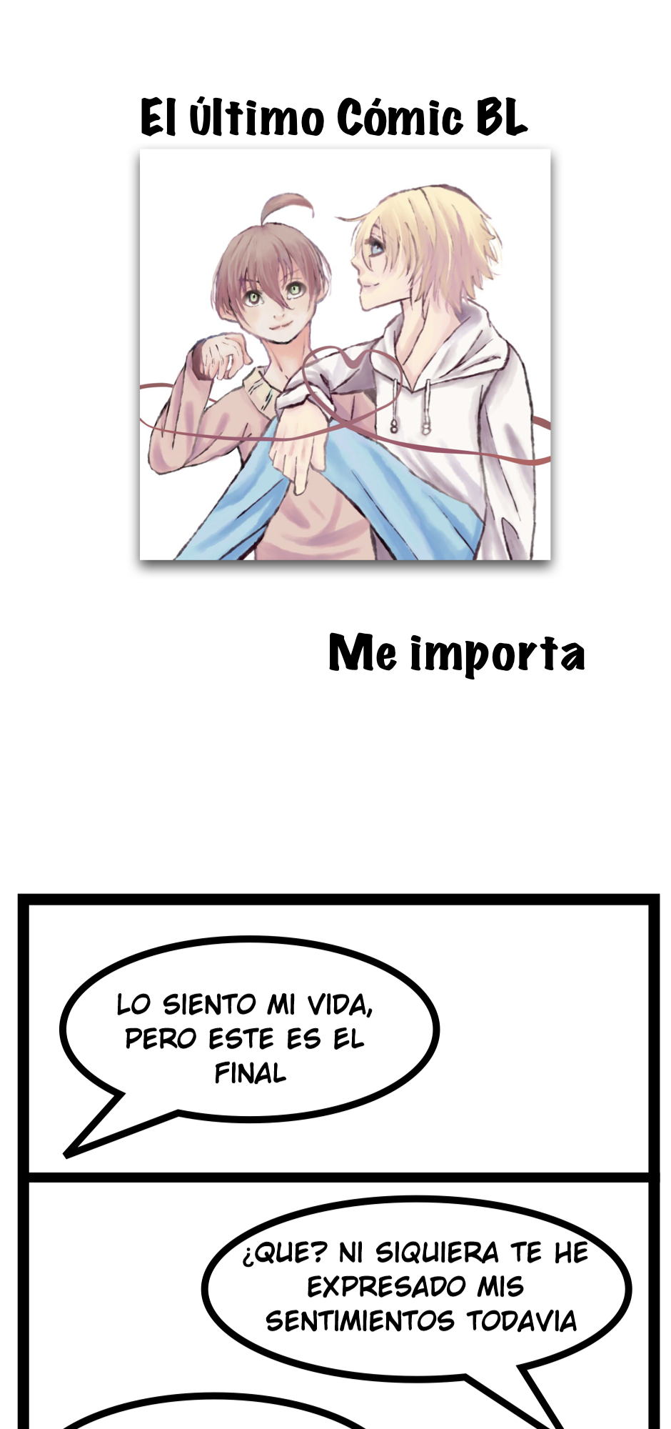 Espero que disfruten de esta versión traducida de The Last BL Comic (El Último Cómic BL). No tengo idea de lo que mi personaje está diciendo ahora porque no puedo hablar español. Si dejan algún comentario, intenten hacerlo en inglés. Gracias por leer - Jens Richard