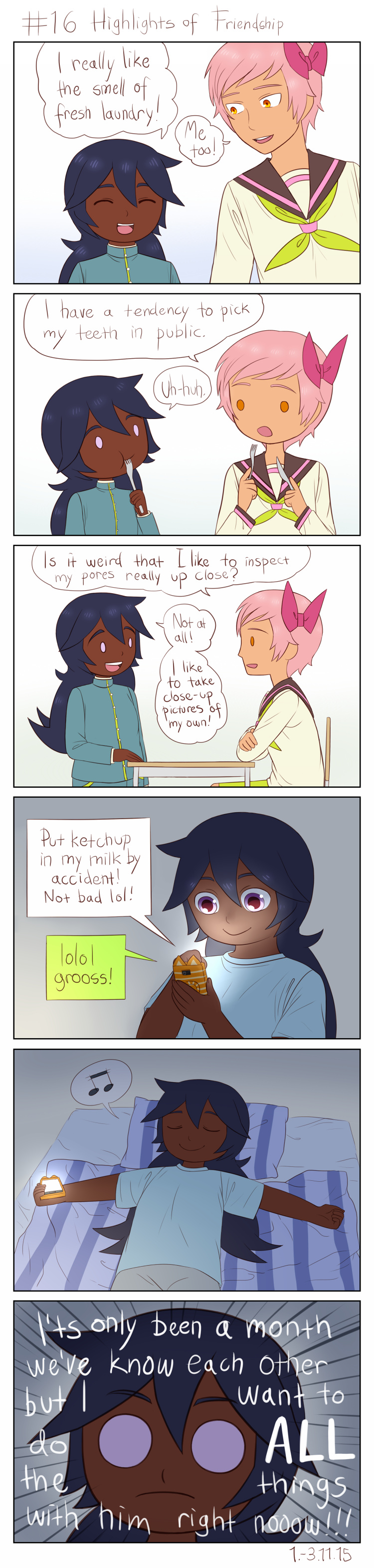 Learning little things about each other one day at a time. =w=~<3 Friendship is a beautiful thing~