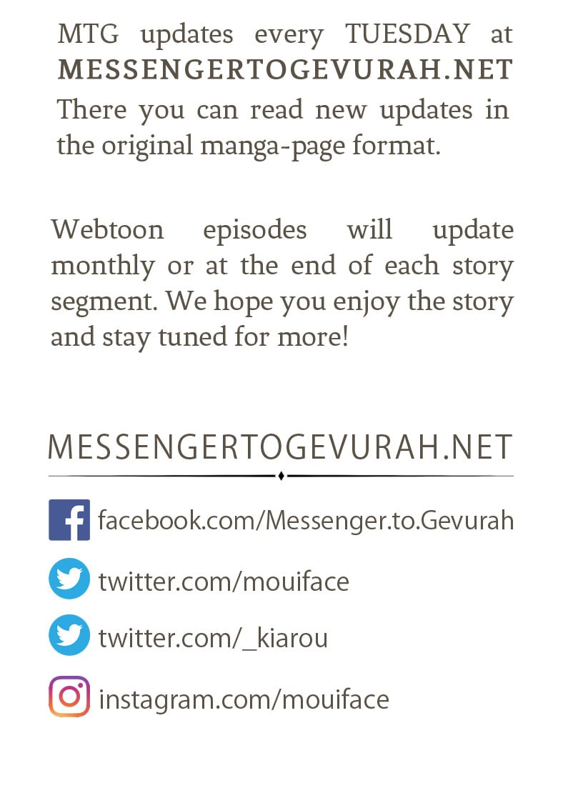 Chapter 3 - Part III will be release 07/13, as always, you can go to MESSENGERTOGEVURAH.NET if you want to read the series week-to-week in its original manga format. We hope to see you then!