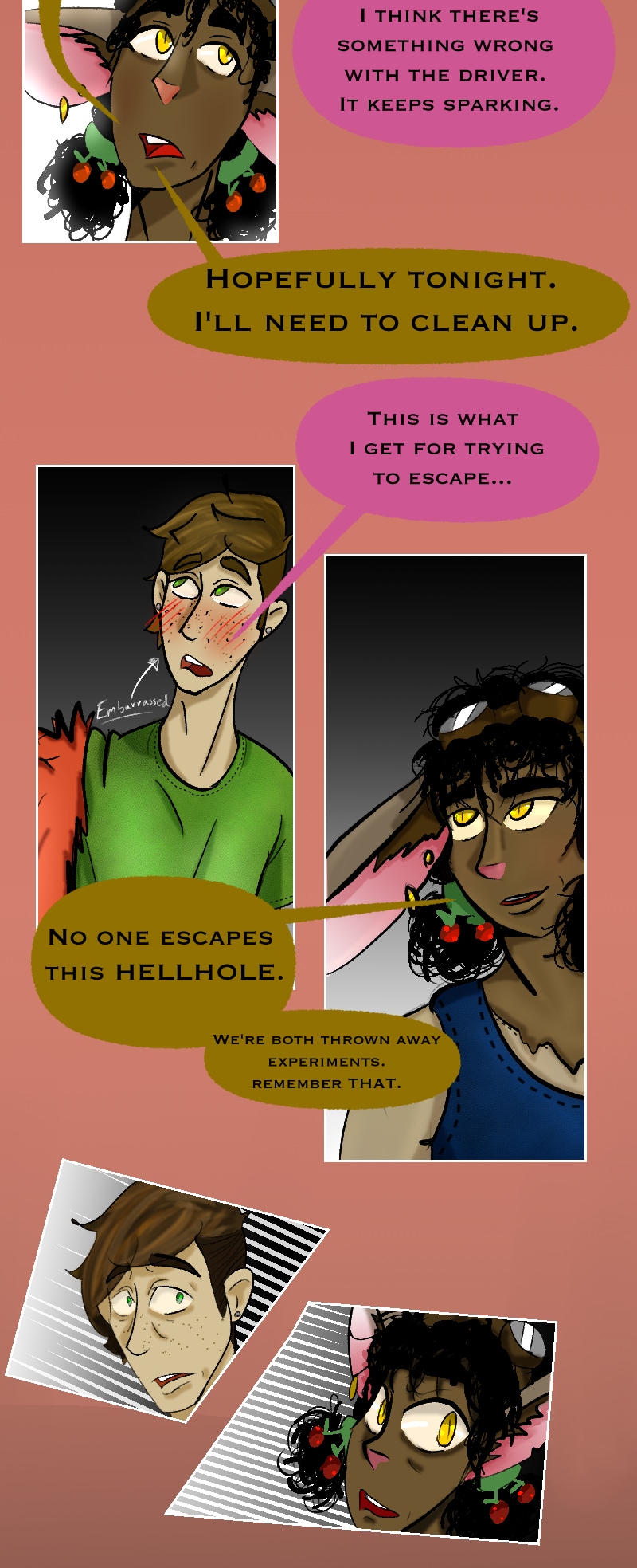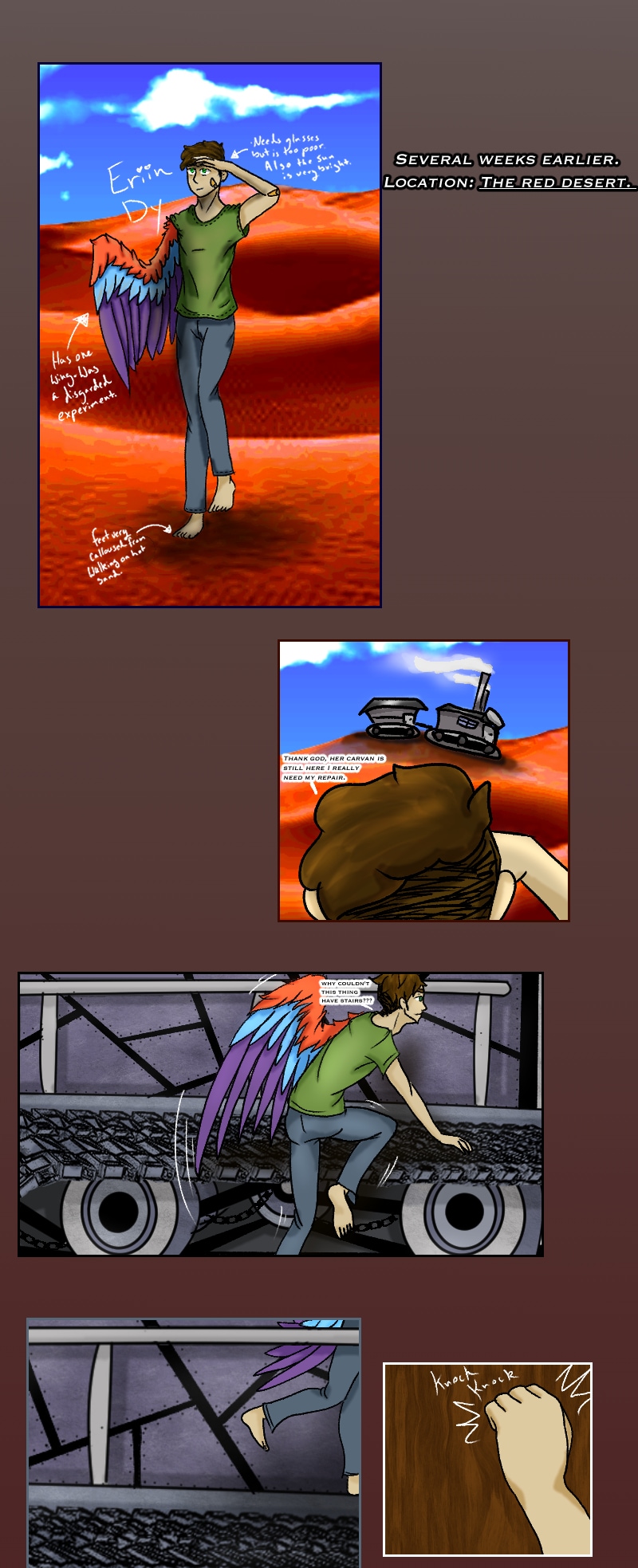 An insane knight-zealot, a grouchy cyborg, a bonkers mechanic, a cannibalistic fairy, and a one-winged freak, embark on misadventures.