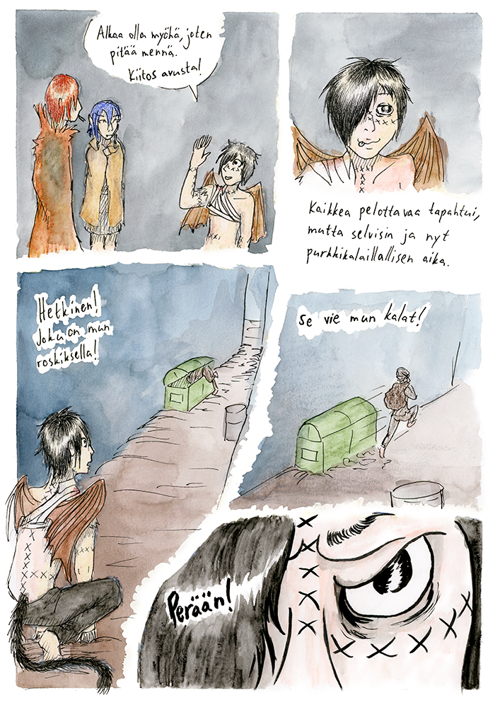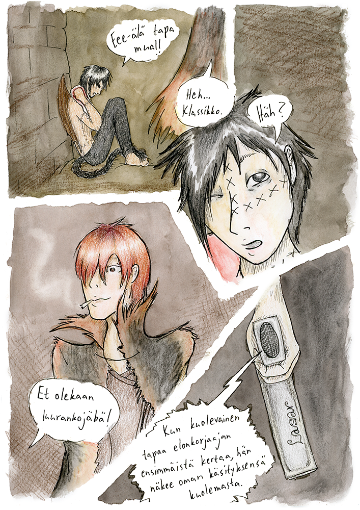 This comic is in Finnish. For the English version check out The Alpha Omega Codex.