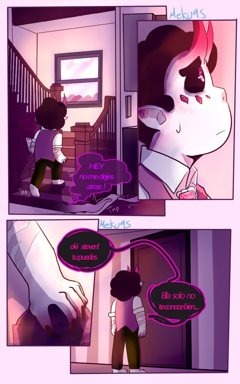 a todos los hispano hablantes bienvenidos despues de casi mas de un año de estar publicando e decidido a comenzar a publicar mi comic en español para los que tengas problemas de entender mi pobre ingles asi que bienvenidos a este gran universe alterno llenos de demonios y criaturas donde nuestro querido steven es una ser mitad humano y mitad demonio y que ha hecho un contrato con connie maheswaran