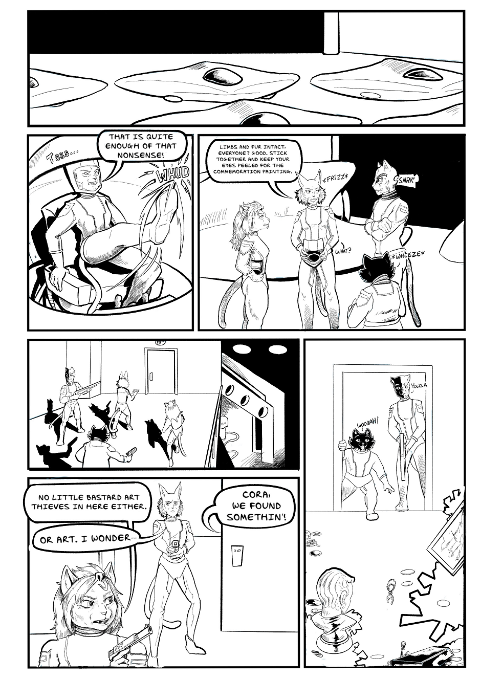 In this weekly comic (new pages on Tuesdays!), a heroic squad of four space-faring cats -- dauntless Captain Cora, team firebrand Mini, ever-curious Fido, and stoic strongman Icky -- fly their ship Catnip 1 into dangerous and thrilling adventures, surviving on the strength of their instincts... and their friendships.