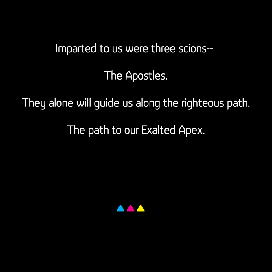 In the land of Trinita, there is only one true constant: The Exalted Church of the APX. Lead by three supreme beings known as the Apostles, their duty is to conquer and unify the masses in order to atone for the mistakes of their ancestors. Trapped by a mysterious, black fog that encircles the last habitable zone on the planet, Trinita is cramped, overpopulated. Tensions continue to rise as the Church clashes with insurgents and those who deny the reach of their Exalted Creator. Can the people be united? Or is mankind doomed to be withered and eclipsed by greed and ignorance? Will they ever find their APX?