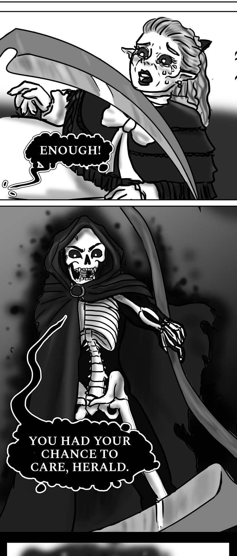 Legends tell about the Persephone, a rare kind of Banshee whose scream is so powerful that can not only herald the near death, but summon the Grim Reaper himself to her aid.