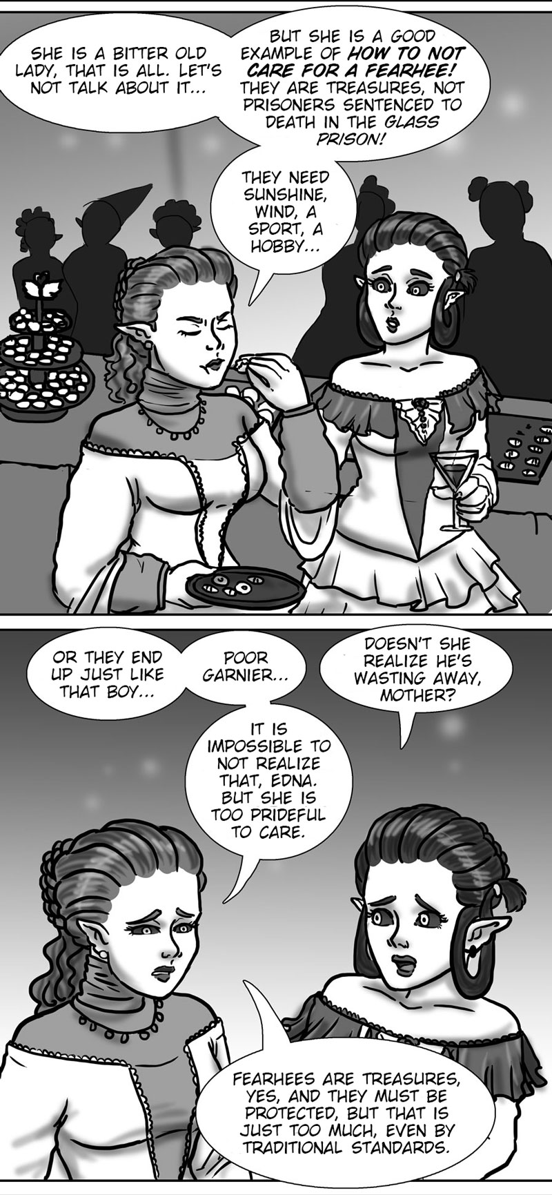Oh that was such a chapter! Her grandma was abusing Garnier! I'm so glad Edna stands against the society she comes from's standards. And it was cool to see her mother stick up for her for once :)
