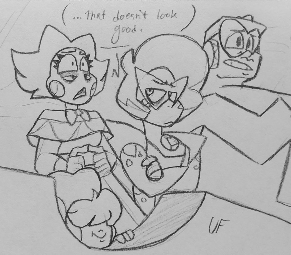 Seeing Red was made in the middle of Steven Universe Future, so "Fragments" hadn't aired yet; that's why Jasper still has her old helmet design! Still, I intentionally tried to tie it into the way Future kicked off.