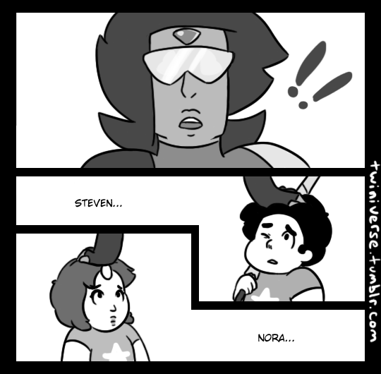 Os gêmeos nascem quando menino e menina, chamados Steven e Nora. Nem Pearl nem Rose planejaram qual bebê recebeu qual Gem, então foi apenas coincidência que Steven pegou Gem e Rose e Nora pegaram Pearl.