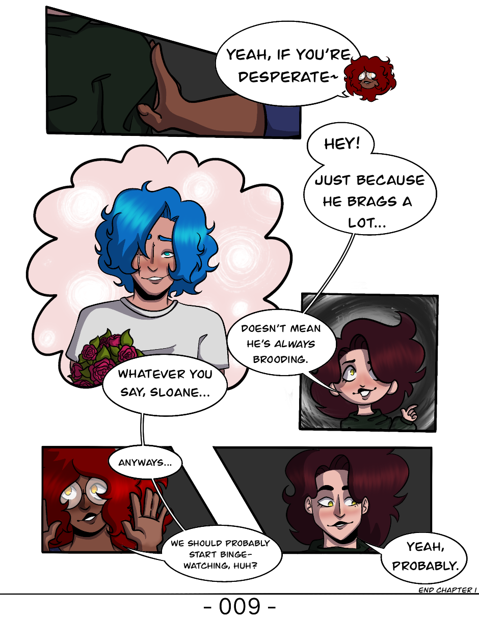 And with that, Chapter one is done! Next up will be a “memory interlude” chapter and then Chapter 2! Also I graduated from High School the other day and now I’m in a “start making another comic with a friend” funk and,,,, I can’t handle that stress…