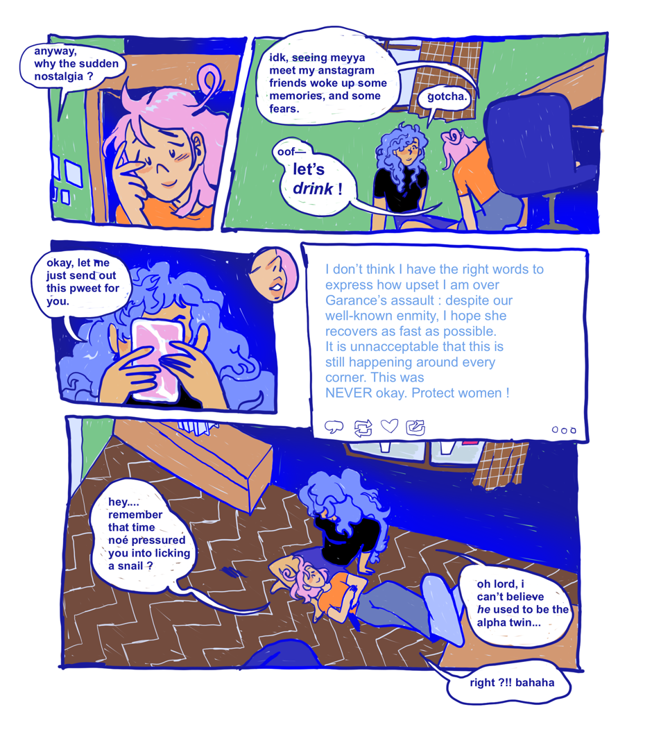 disclaimer : i’d like to point out the fact that my characters were not meant to be morally irreproachable or intellectually flawless. if you see a situation and/or point of view you dislike, chances are, it makes me cringe as well! my wish is to deconstruct existing thoughts and behaviors on top of entertaining yall ; ˆ 3