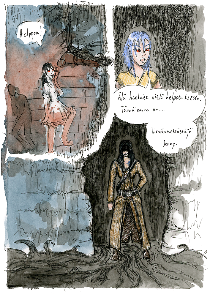 This comic is in Finnish. For the English version check out The Alpha Omega Codex.