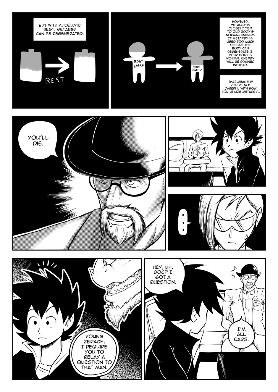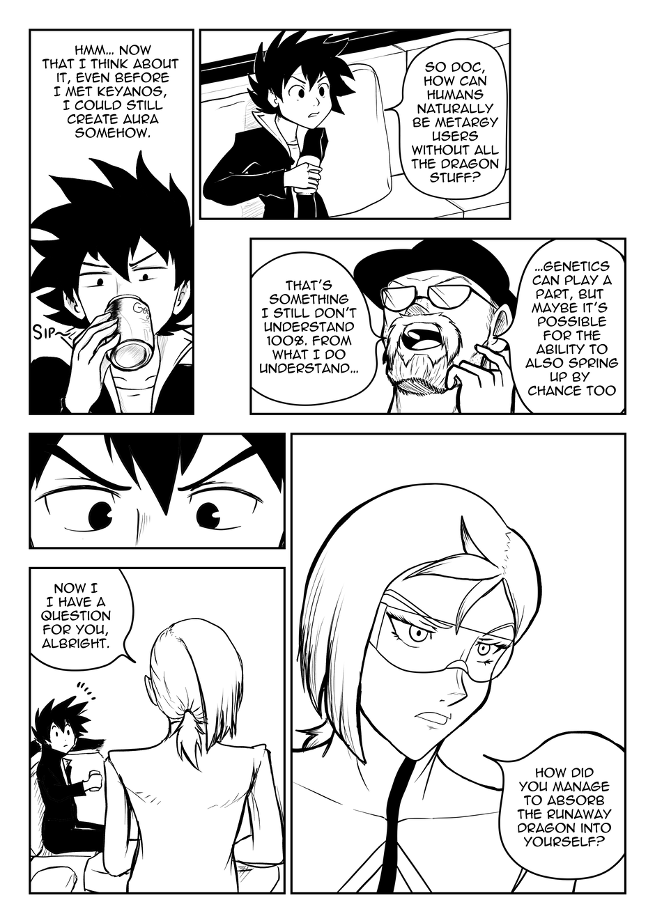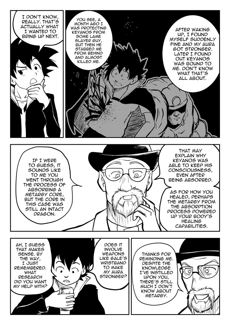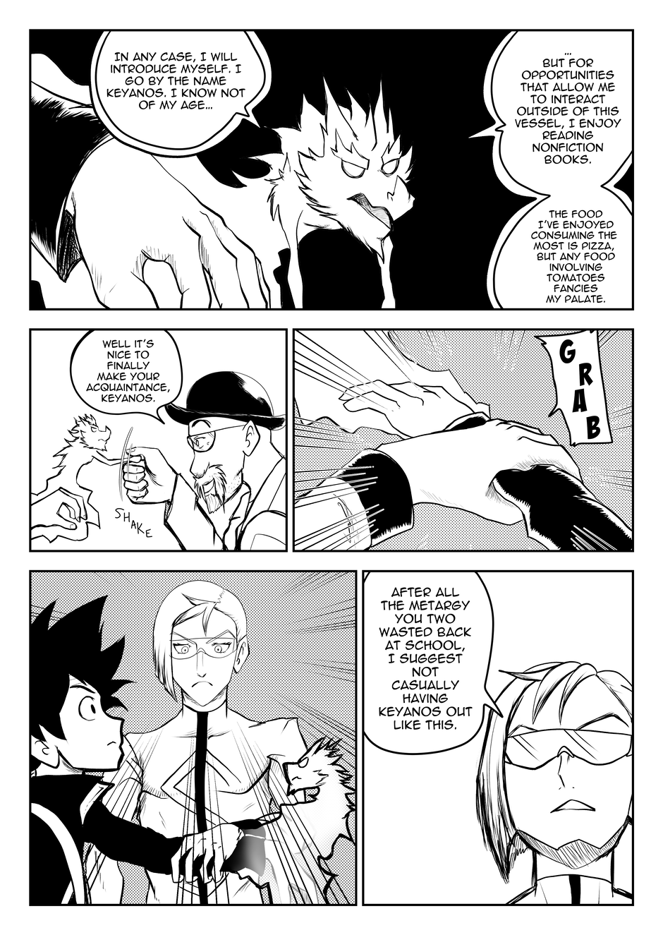 I have finally graduated college and earned my degree in something I later realized I may not enjoy doing for a living (Yaaay). If you've noticed, I made some changes to Keyanos's speech bubbles by given them double outlines, rather than the more unique "transceiver" bubbles I've used before. This change was inspired after I started reading Shaman King, and noticed how the author gives double-lined speech bubbles to ghosts/spiritual entities. I feel that the new bubble is more fitting for someone like Keyanos, while also being more flexible and less of a hassle to draw compared to the previous bubble.