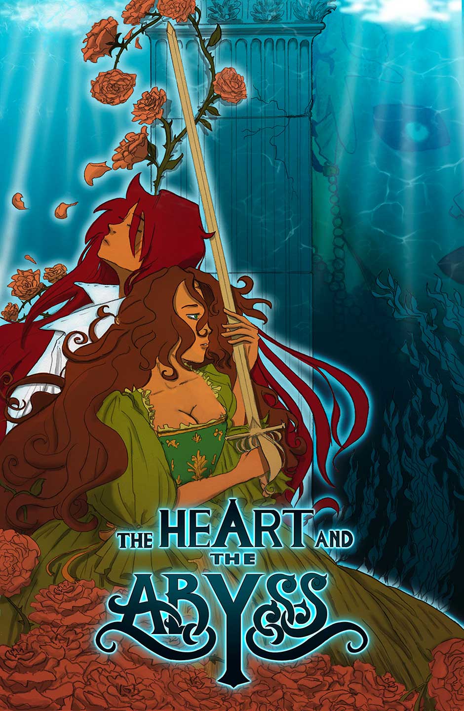 The Heart and the Abyss is an adventure story with pirates, mermaids, sword fights, and magic. The main cast is all Lgbtq+.
