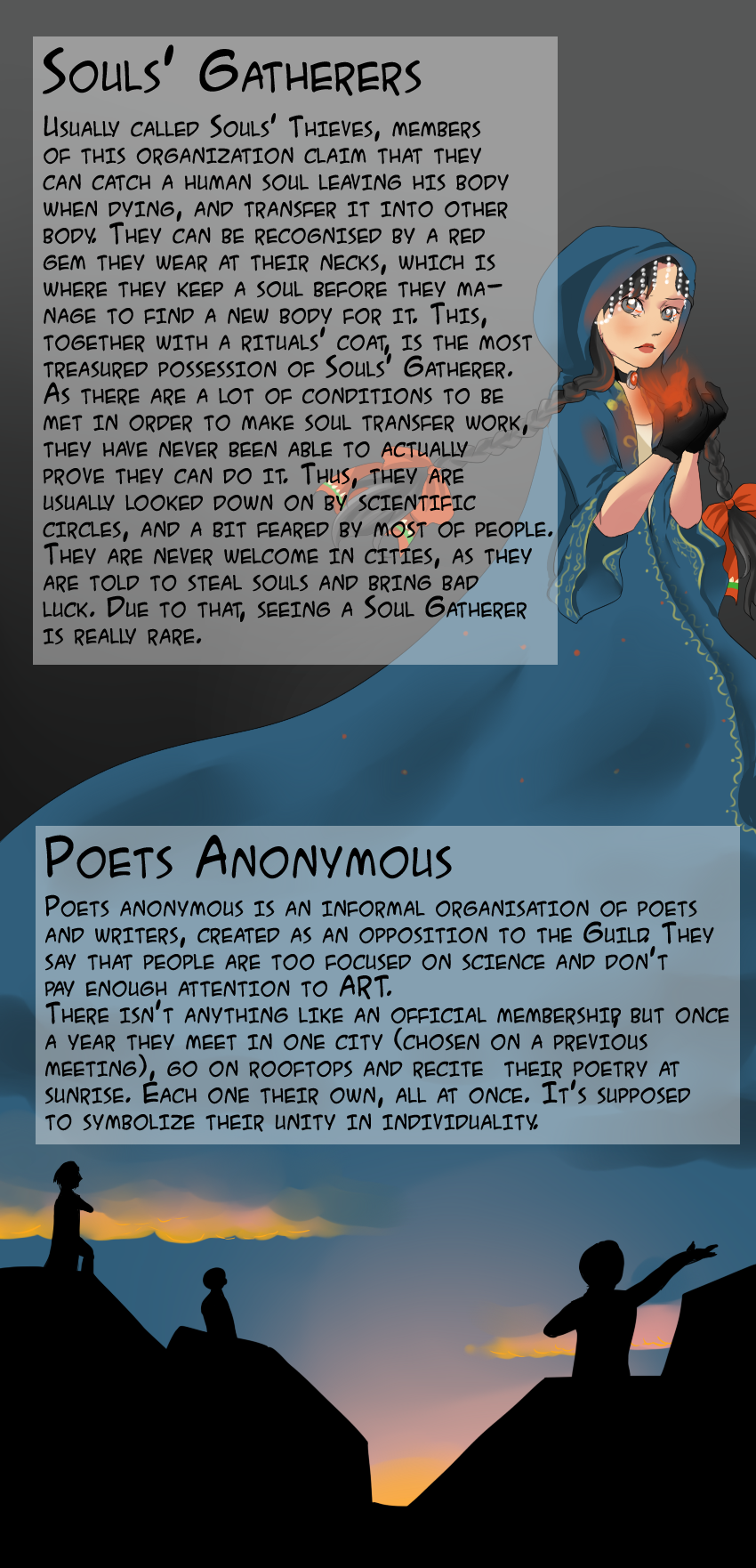 Bonus pages after chapter 1, additional info about organizations in 6,75 world ( :