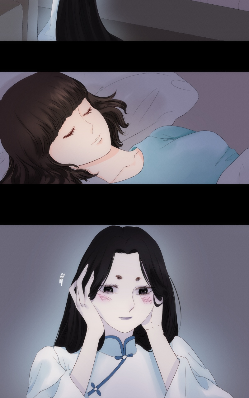"Roommate" is a silent webtoon. It tells the story of a student named Lan, who works part-time in a café. On the way back, she saw a small incensory on the side of the road. Incidentally dedicate a branch of visiting flower, she didn't know she had brought a ghost home.