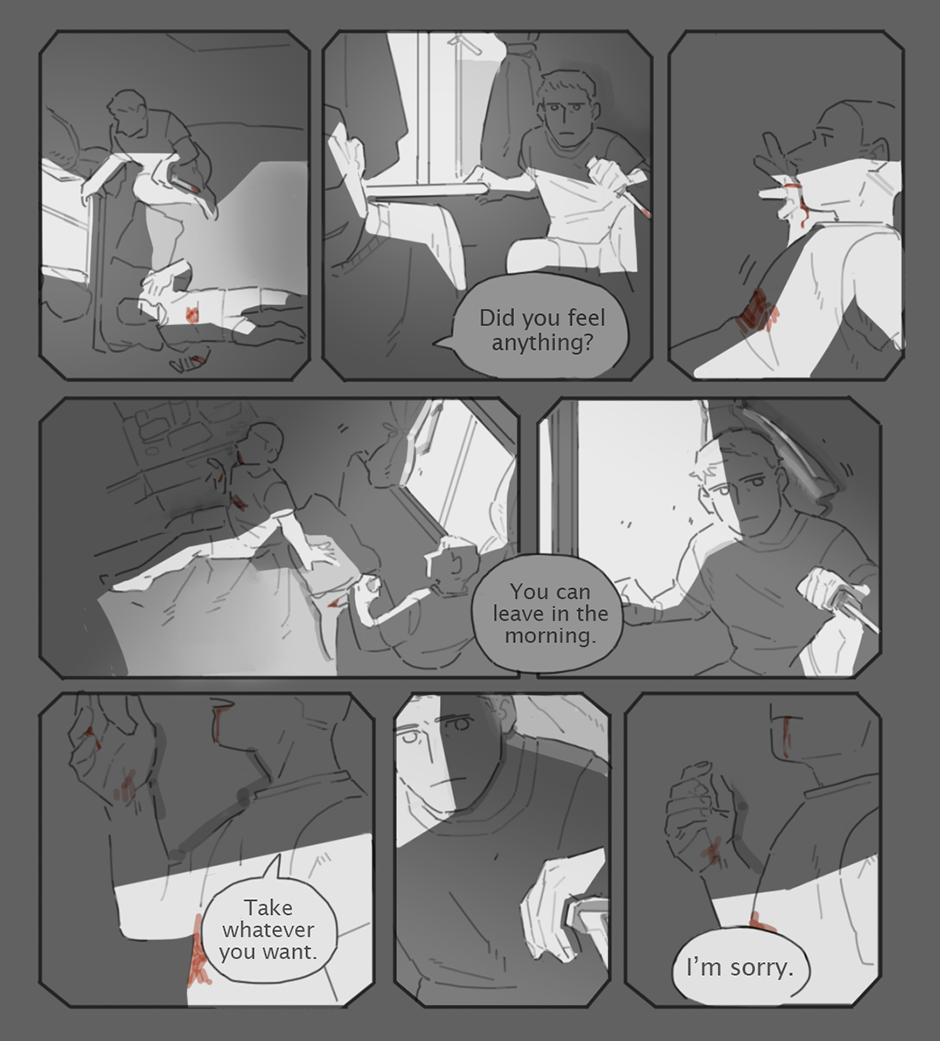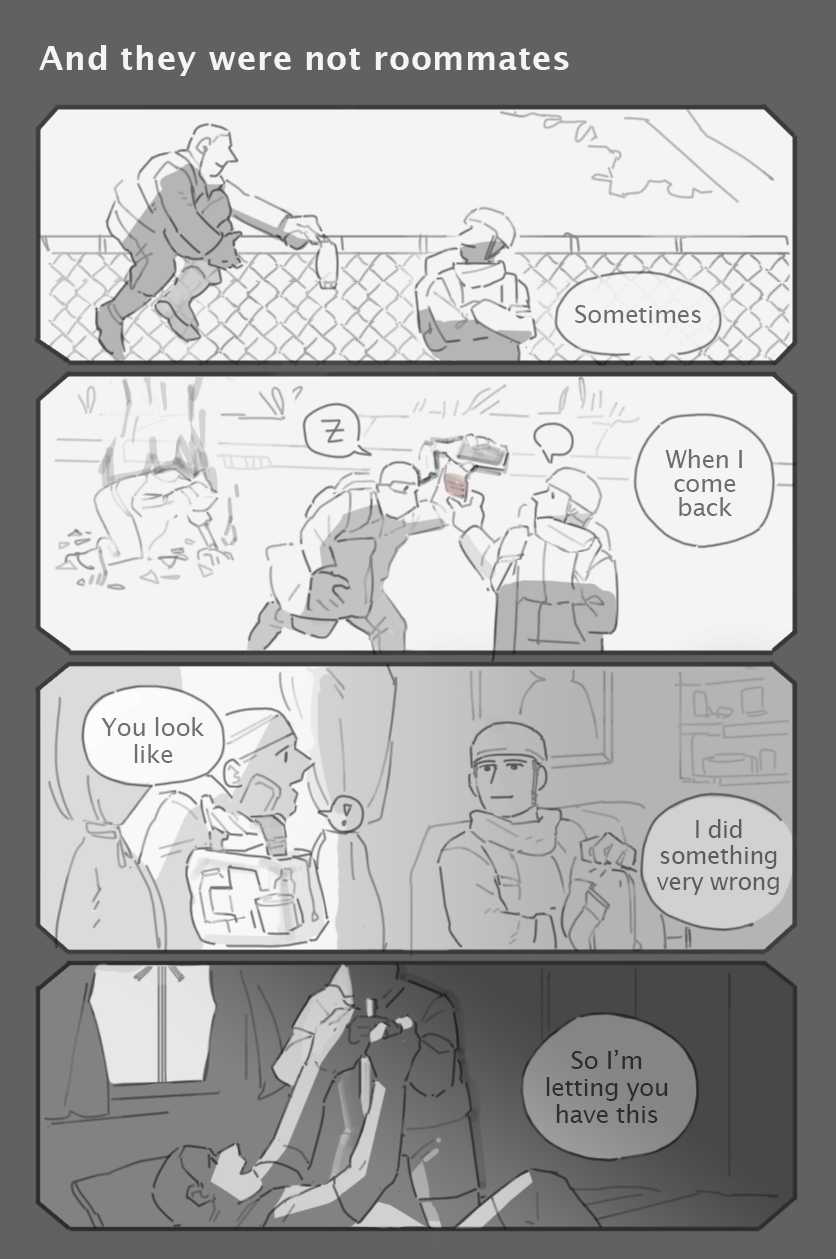 A comic about two men surviving quietly at the edge of a city. Mostly domestic stories about scavenging for supplies and trust issues. Sometimes there are zombies.