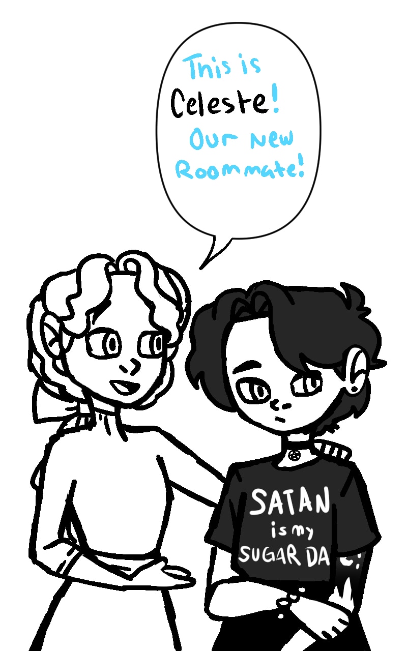 One's obsessed with the paranormal and grapes, one can never seem to put a book down and is the mom friend, and one is an anxiety hot mess express and is terrible at math. Meet Oriane, Libet, and Celeste- Teen roommates who always seem to be getting into some kind of crazy shenanigans. Such as creating their own cryptid, riding around on a panda scooter through a mall, or attempting to summon a demon with a potato!