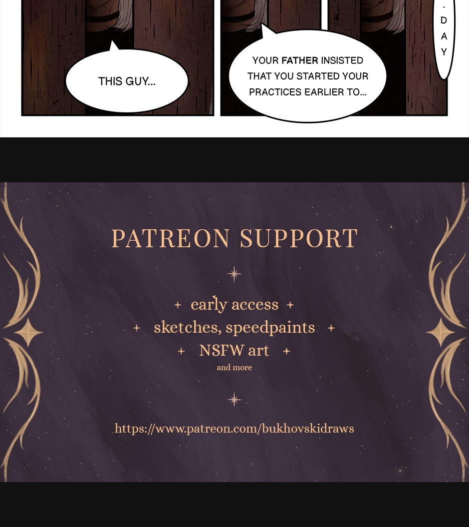 Sorry for the irregular posting but I need to catch up with new pages for early access on Patreon. Also after few episodes, the updates will be only once a week as the work goes pretty slowly tbh and I need to draw for a living too🖤