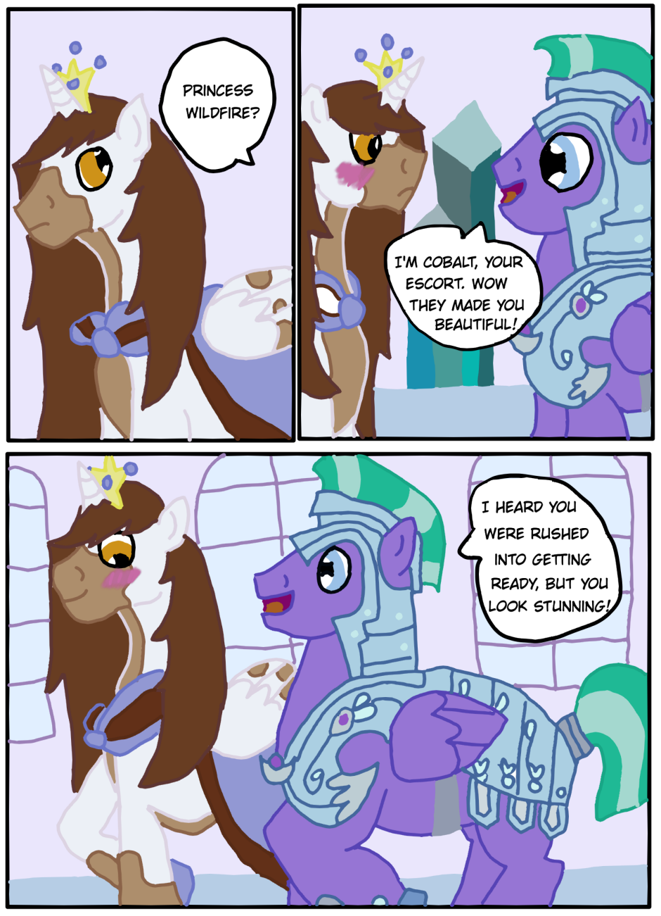 A fresh take on MLP with a dash of other fandoms. Not a kids comic, but not inappropriate either. Celestia discovers a human princess and an elven prince in her castle. She calls for the aid of Sunburst, Twilight, and Starlight, hoping they might know how these two got to Equestria, and what to do with them. Full of adventure, suspense, and a dash of romance, Wildfire is sure to captivate you.
