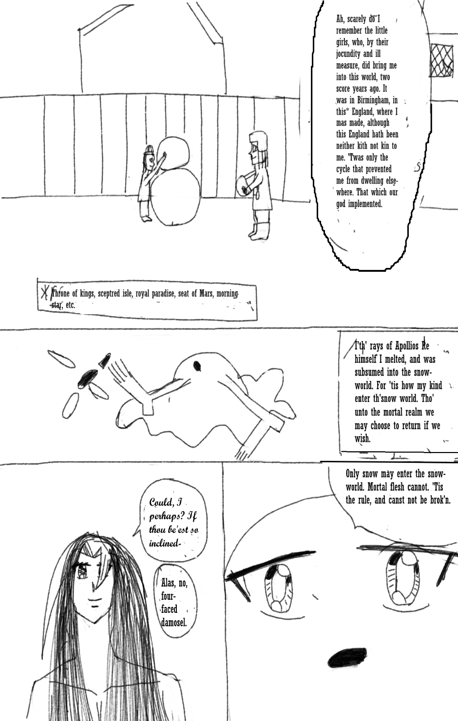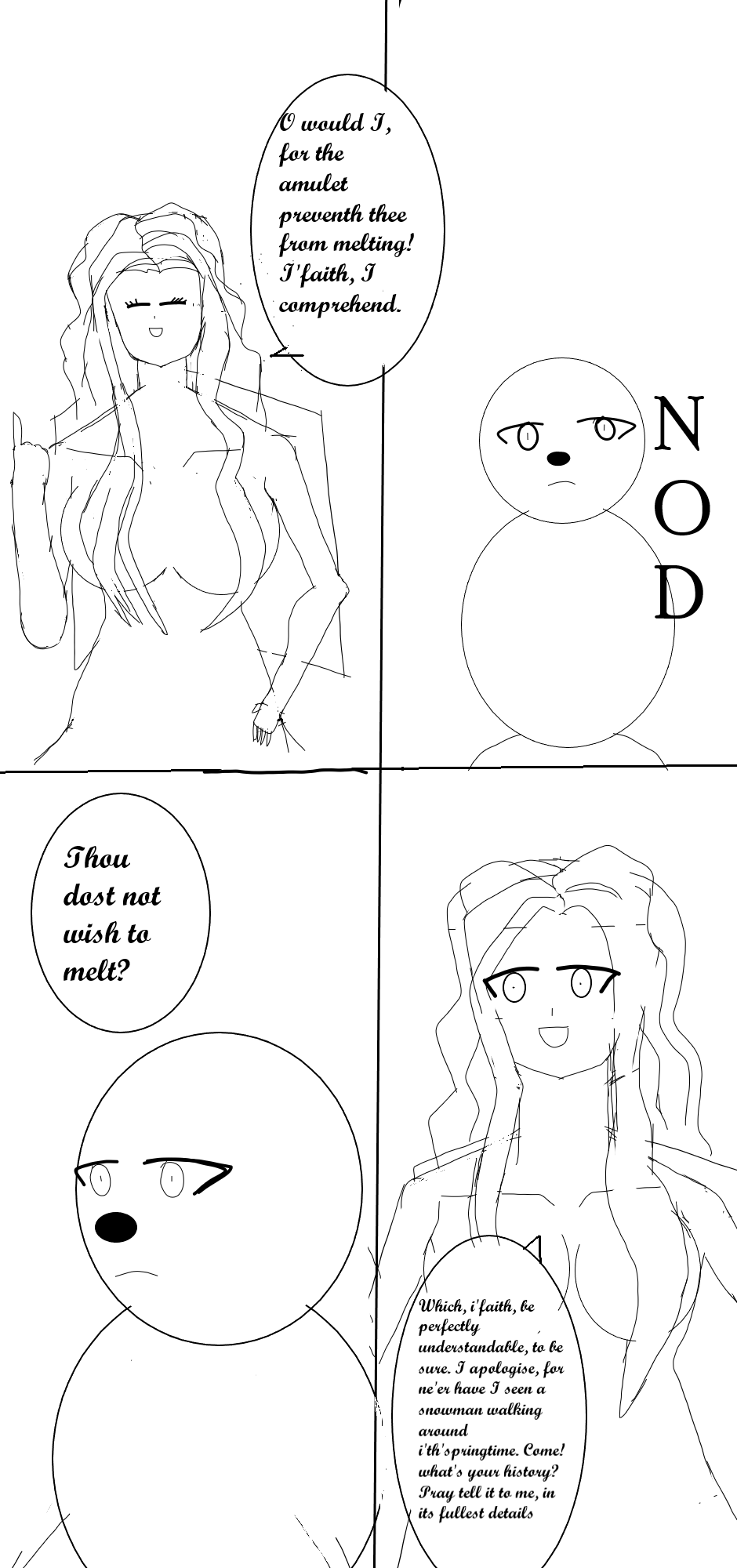 For centuries, the snowmen have been isolated from the rest of the multiverse, dismissed only as folklore by the wondrous species that reside within. Now they’re back. Meet Erik, a snowman with a heart of gold, and Oriel, his guardian Angel, kicked out of heaven for being selfish. They skip merrily through the multiverse as much as they can, fighting evil wizards, wicked faeries and fearsome giants. But an evil snowman with superpowers is gathering an army of clockwork robots, intent on conquering the multiverse by force, and unless our heroes can weather the current conflict, they’ll soon be skating on some very thin ice…