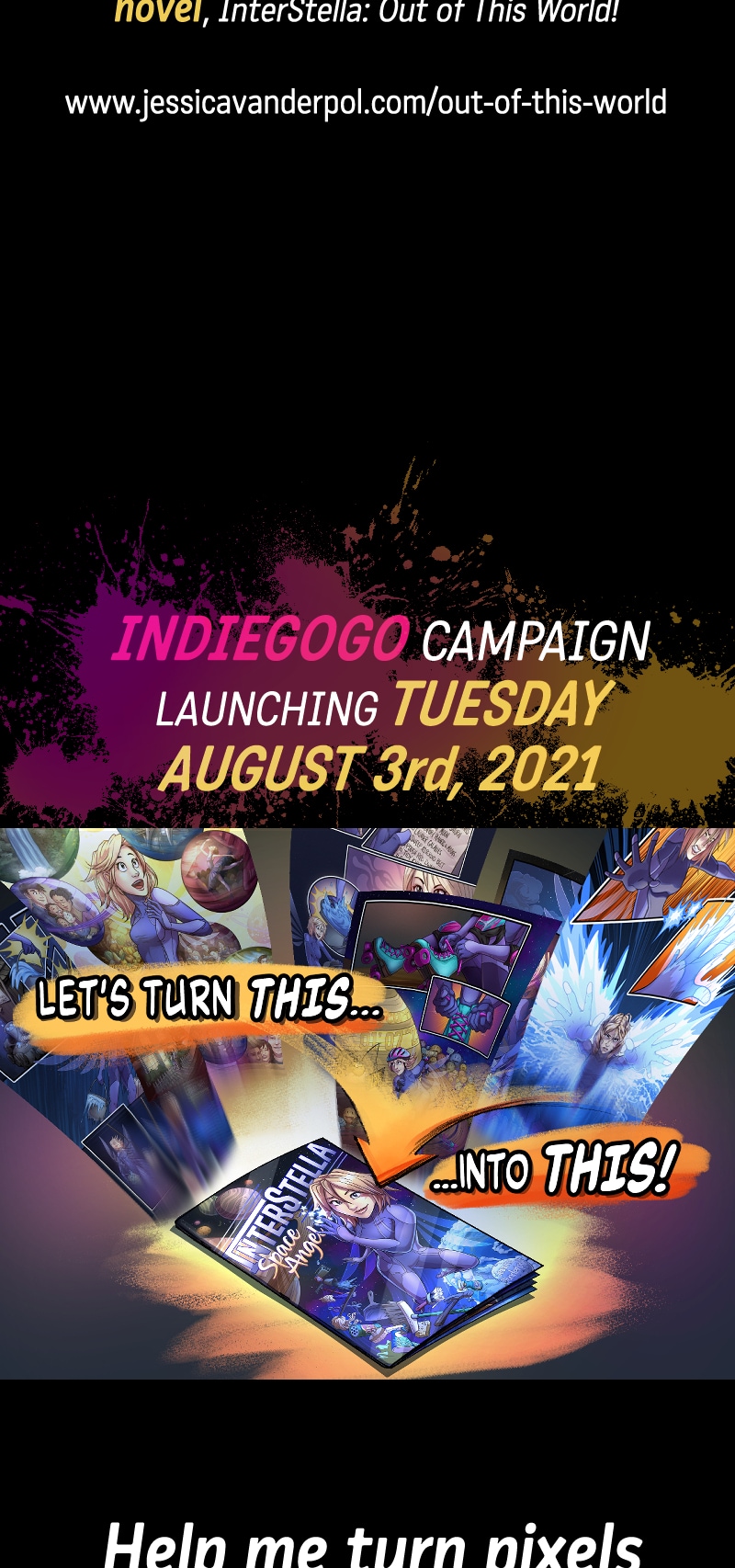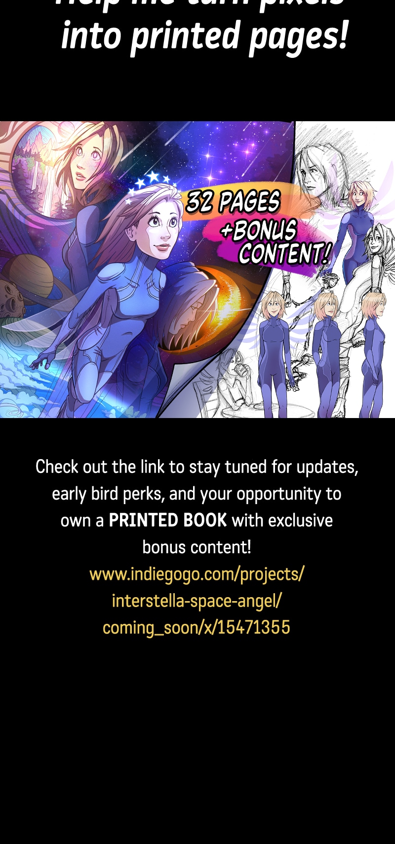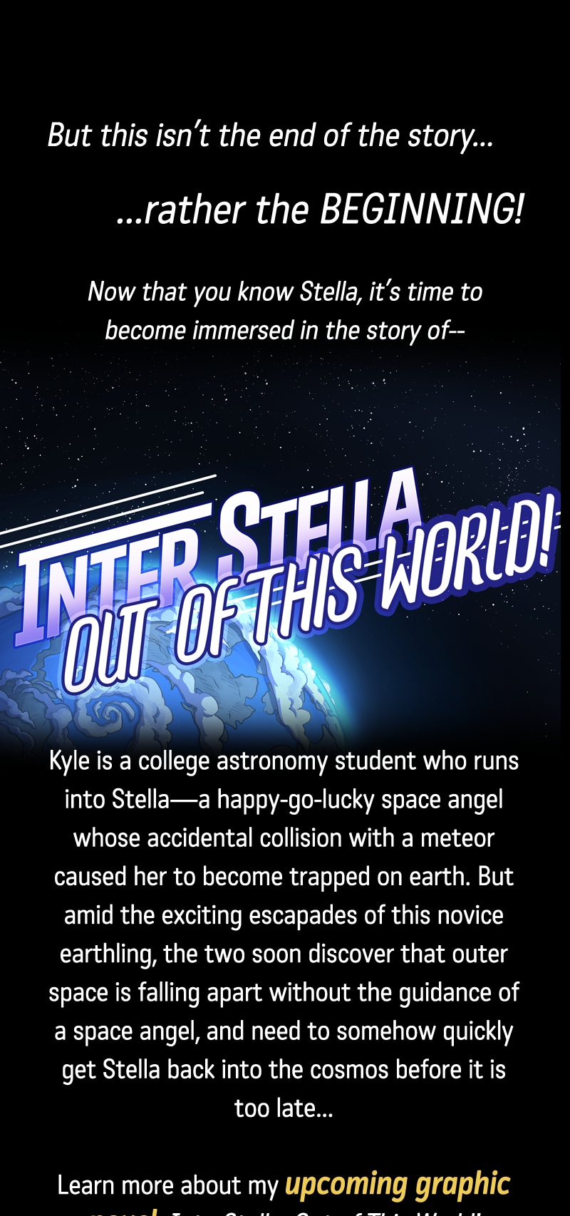 Thanks for reading! This concludes InterStella Space Angel, which is the precursor to my upcoming graphic novel: InterStella Out of This World! You can learn more about it on my website, as well as the upcoming IndieGogo at the following links: