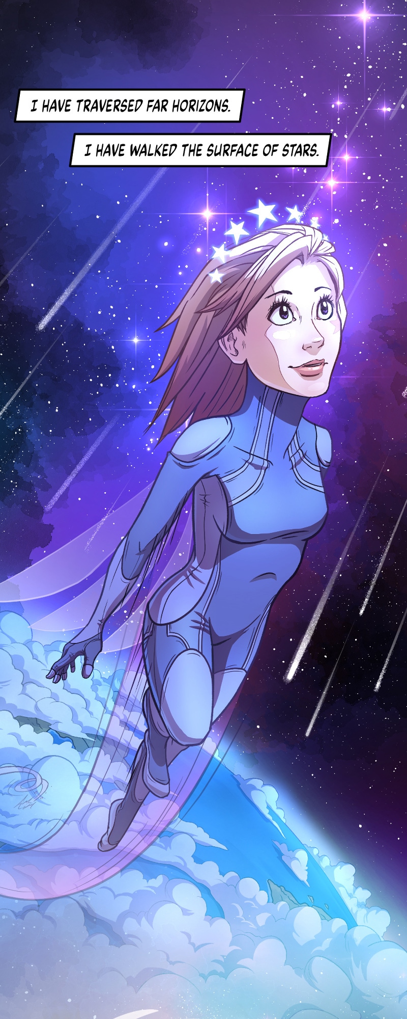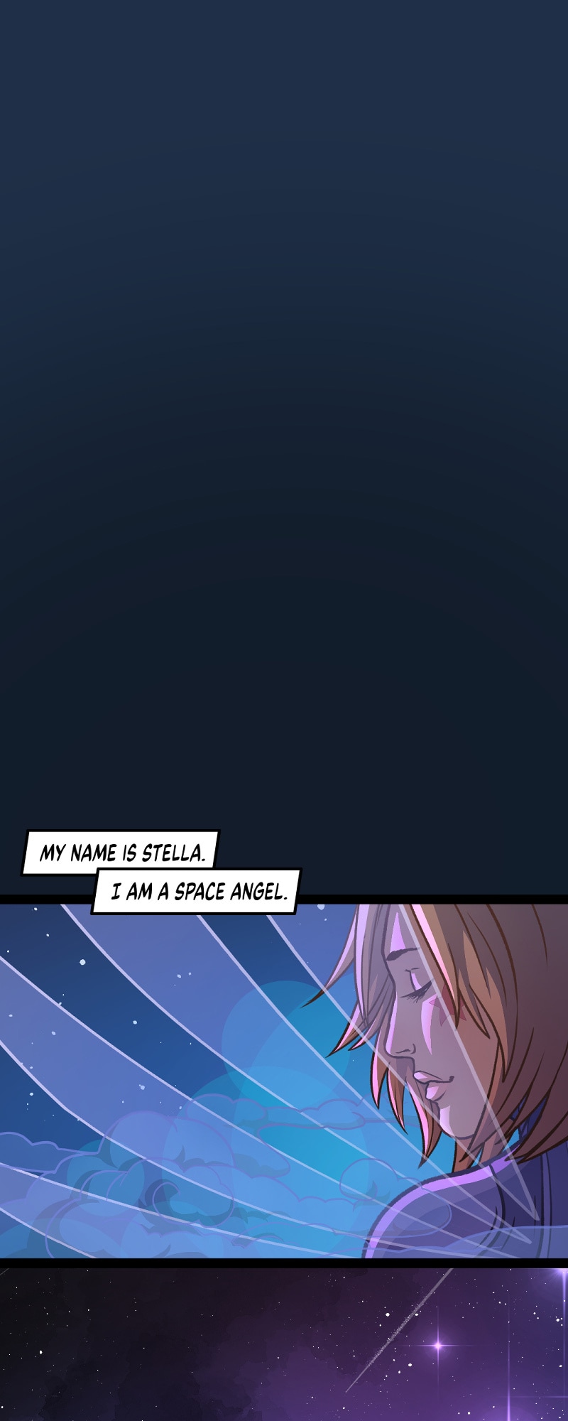 Meet Stella: the angelic being who watches over earth…literally! She’s the one in charge of taking care of the cosmos. From sweeping the rings of Saturn, to replacing burnt-out stars—she’s got every space chore under control. But even with every star at her fingertips, she still wonders what life is like on earth, and is determined to not only find out, but to also somehow offer her services to the people of earth.