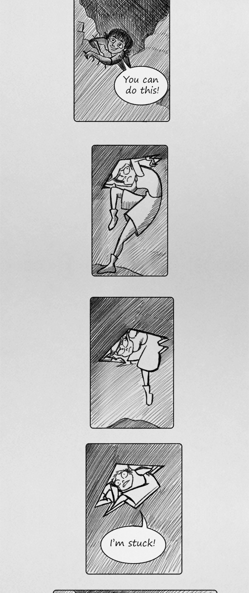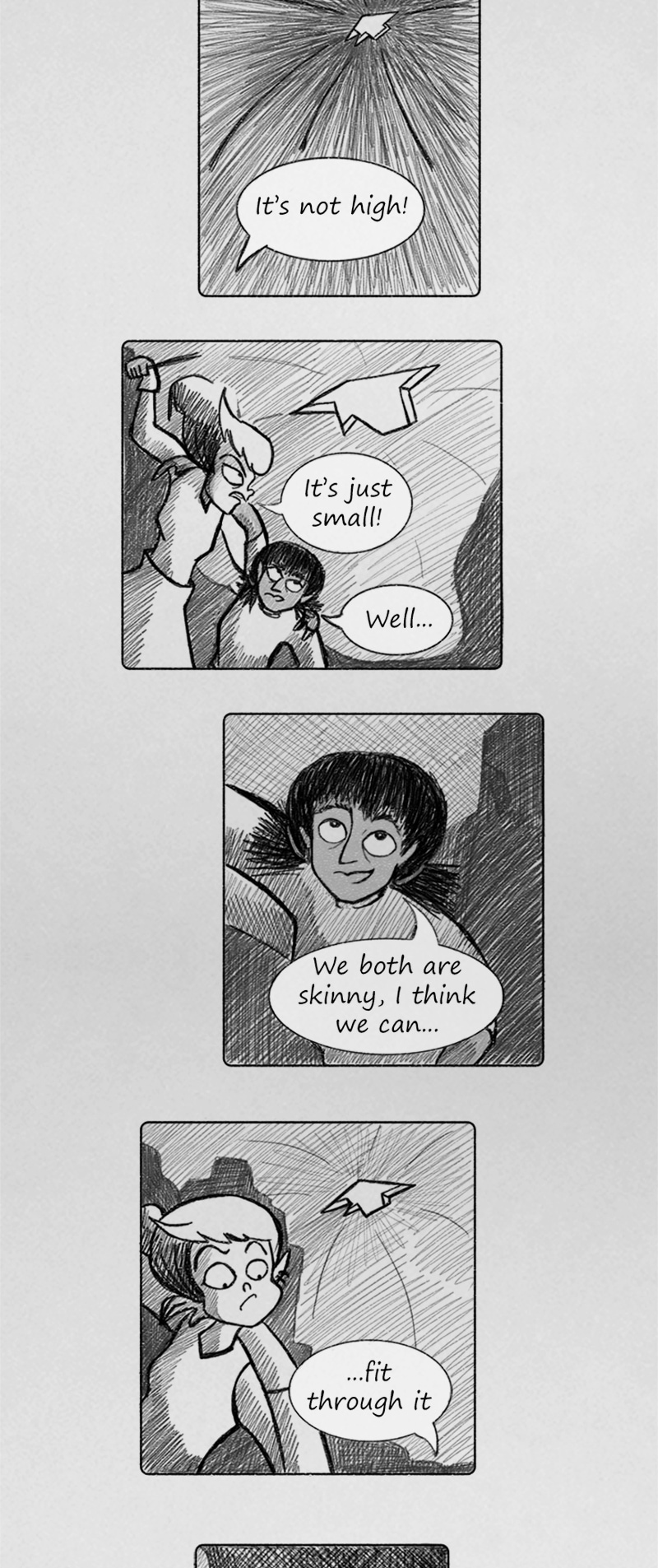 As well as the "It's not high, it's just small." followed by that scene where she's stuck.