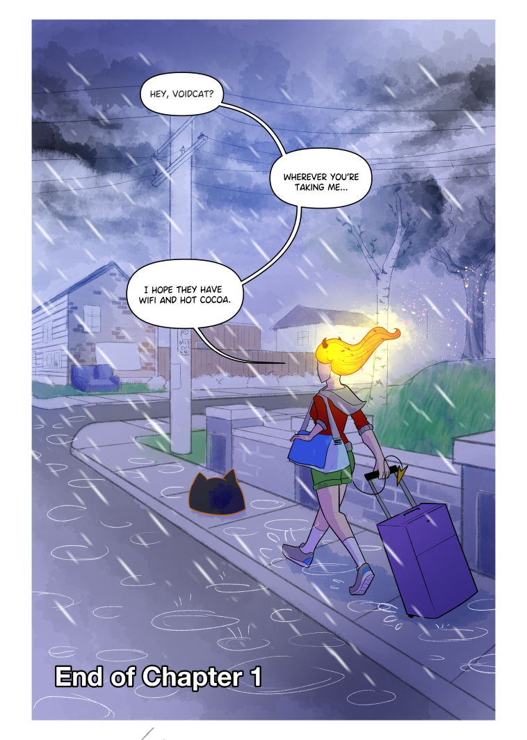 And that's a wrap for Chapter 1! I'm going to be going on a month long break due to getting used to my new job and wanting to catch up on pages. It'll also be a nice break to draw extra art.