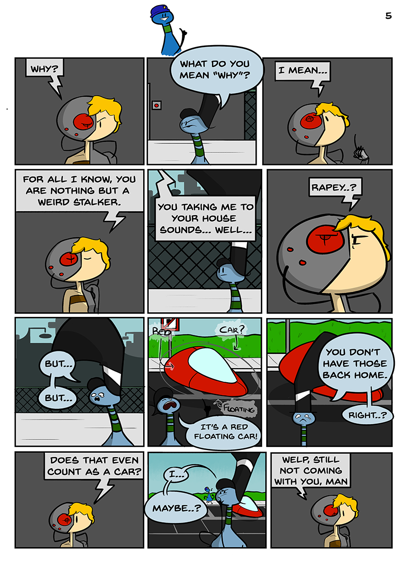 5, 6. A red floating Car