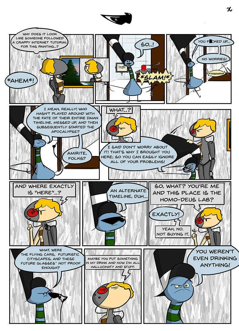 So, you messed up. No worries! I mean, really! Who hasn't played around with the fate of their entire timeline and subsequently started the apocalypse, amirite, folks? That's why I brought you here! So you can easily ignore all your problems. What's that? You wanna go back? Can't help you, bud. Good luck figuring that one out.
