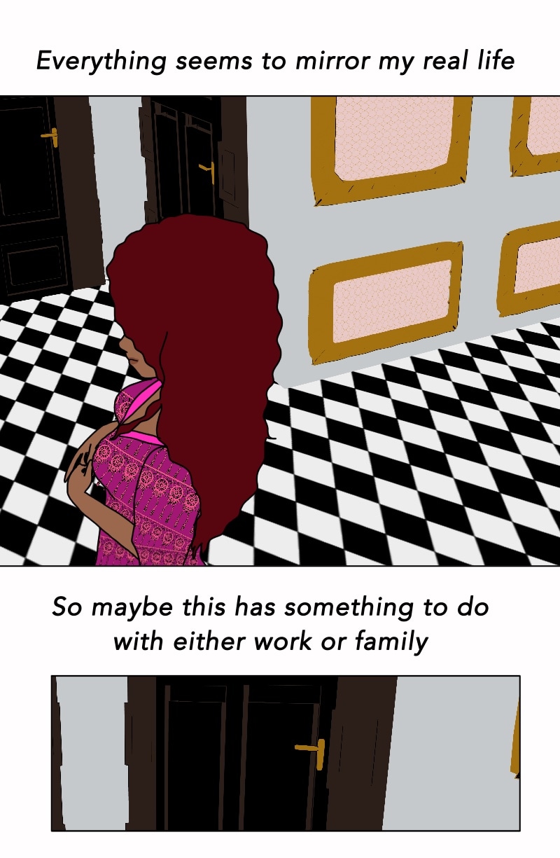 After failing yet another job interview Naomi finds herself in a car accident not far from her place. When she wake up she finds herself in unfamiliar surroundings, wearing strange clothes. Confused and scared Naomi plays along to figure out how she got there and how this new world is connected to her old world. [This comic will update bi-weekly]