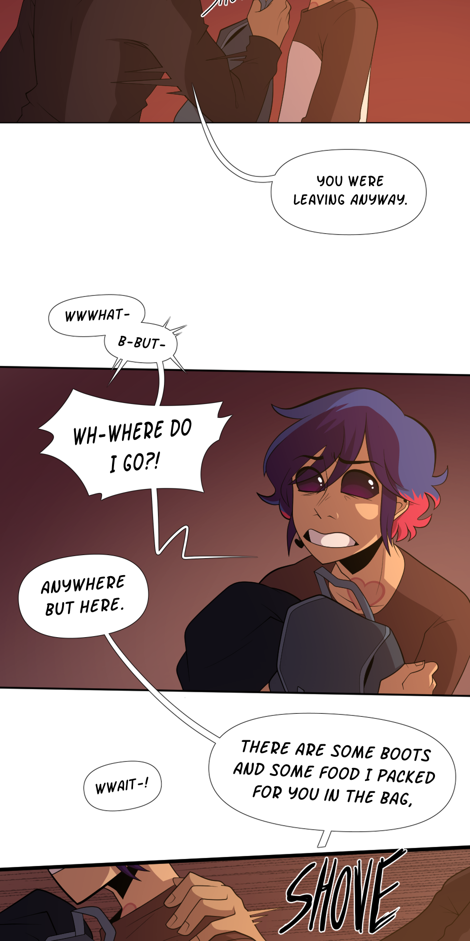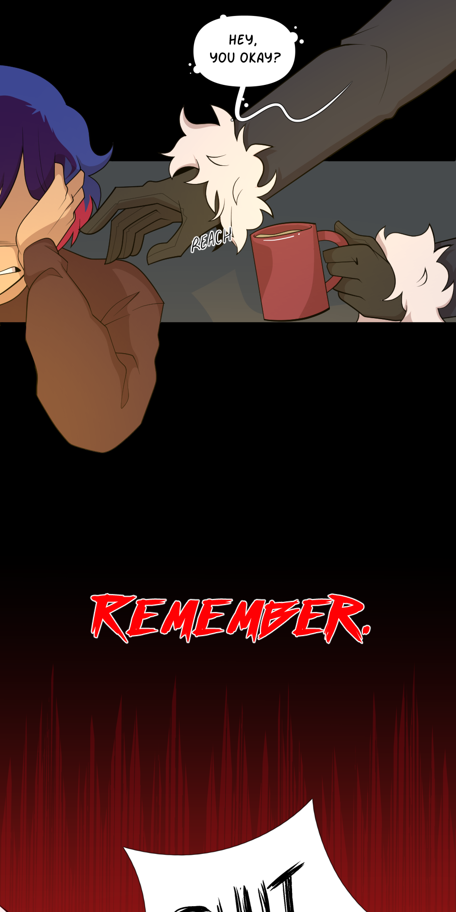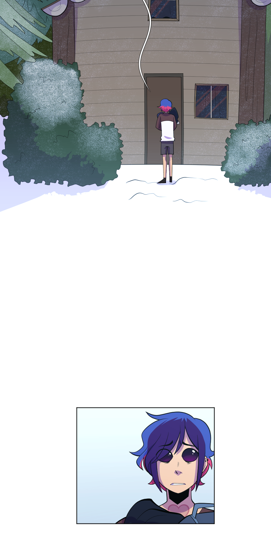 Nowhere Here is a story that's concept began to form/was published to Sudomemo on August 2, 2016. Picked up again on November 28, 2018, where the second version was published to Tapas.io on December 24, 2018, which was then pulled to a stop on July 7, 2019 because of unsatisfactory reasons. As of that date, Nowhere Here went under construction. And soon, on the 17th of September 2020, I started to draw out this final version of Nowhere Here. Publishing the first episode on Monday, June 21, 2021. Accidentally deleting it and then reuploading it on July 4, 2021.