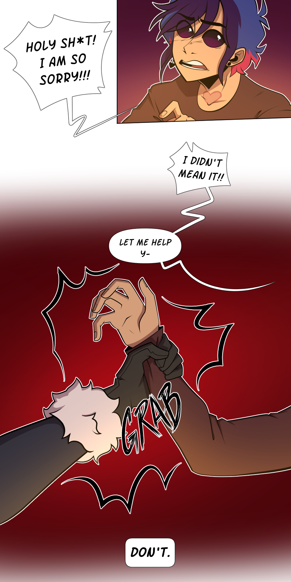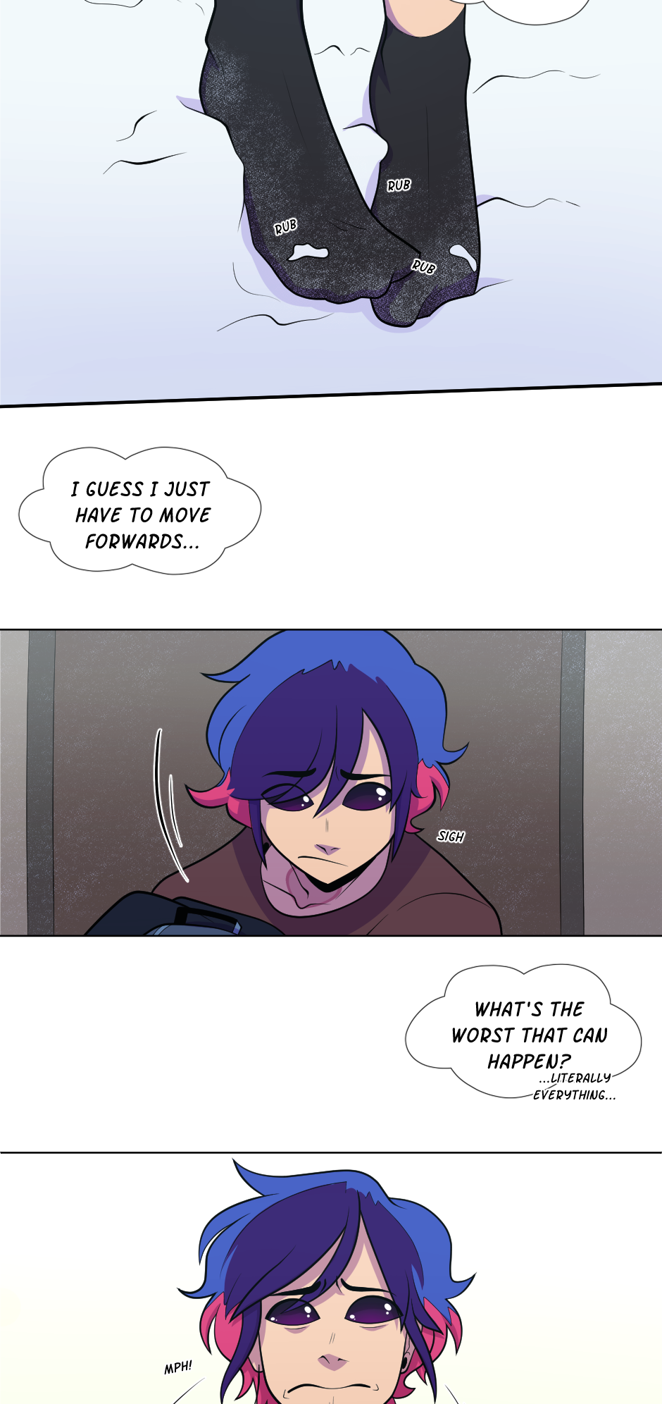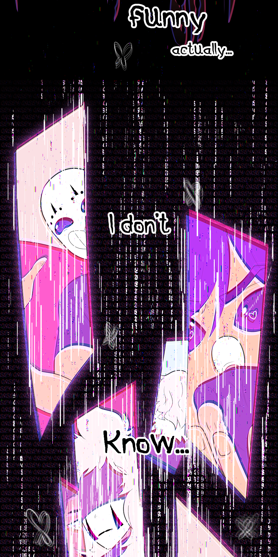 Nowhere Here is a story that's concept began to form/was published to Sudomemo on August 2, 2016. Picked up again on November 28, 2018, where the second version was published to Tapas.io on December 24, 2018, which was then pulled to a stop on July 7, 2019 because of unsatisfactory reasons. As of that date, Nowhere Here went under construction. And soon, on the 17th of September 2020, I started to draw out this final version of Nowhere Here. Publishing the first episode on Monday, June 21, 2021. Accidentally deleting it and then reuploading it on July 4, 2021.