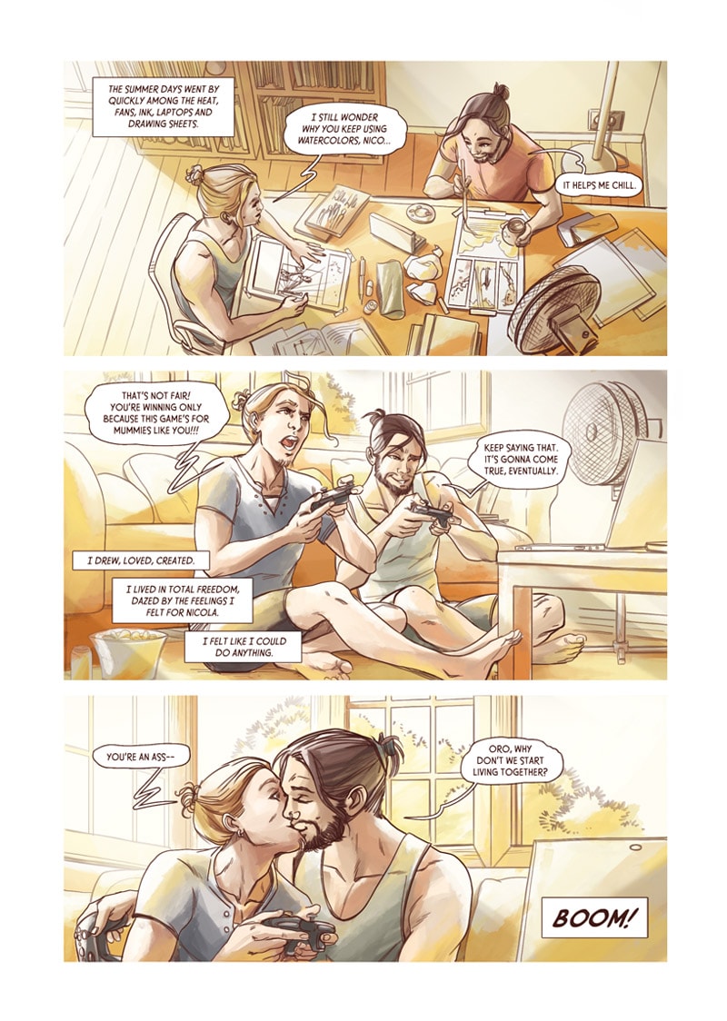 Supported by his mentor and crush, Nicola, he musters his courage and tries his hardest to be a successful comic artist. However, both work and love life start to get complicated and hardships feel never ending. The ordinary is never dull or boring, and that's what Oro is all about.