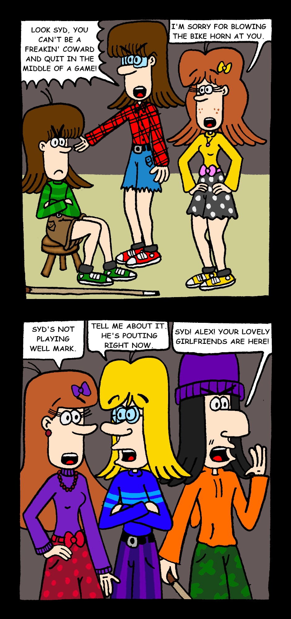 Syd's World is a comic series about Syd, his family, and his friends getting into all kinds of mischief. Syd's family includes his siblings Holly, Alex, and Grace, cousins Mark and Robert, and his parents Marie and Bruce. Craig, Austin, and Pete are Syd's friends and has a girlfriend (now cousin-in-law) named Lilly. The five of them are in a band called Marshmallow Head.