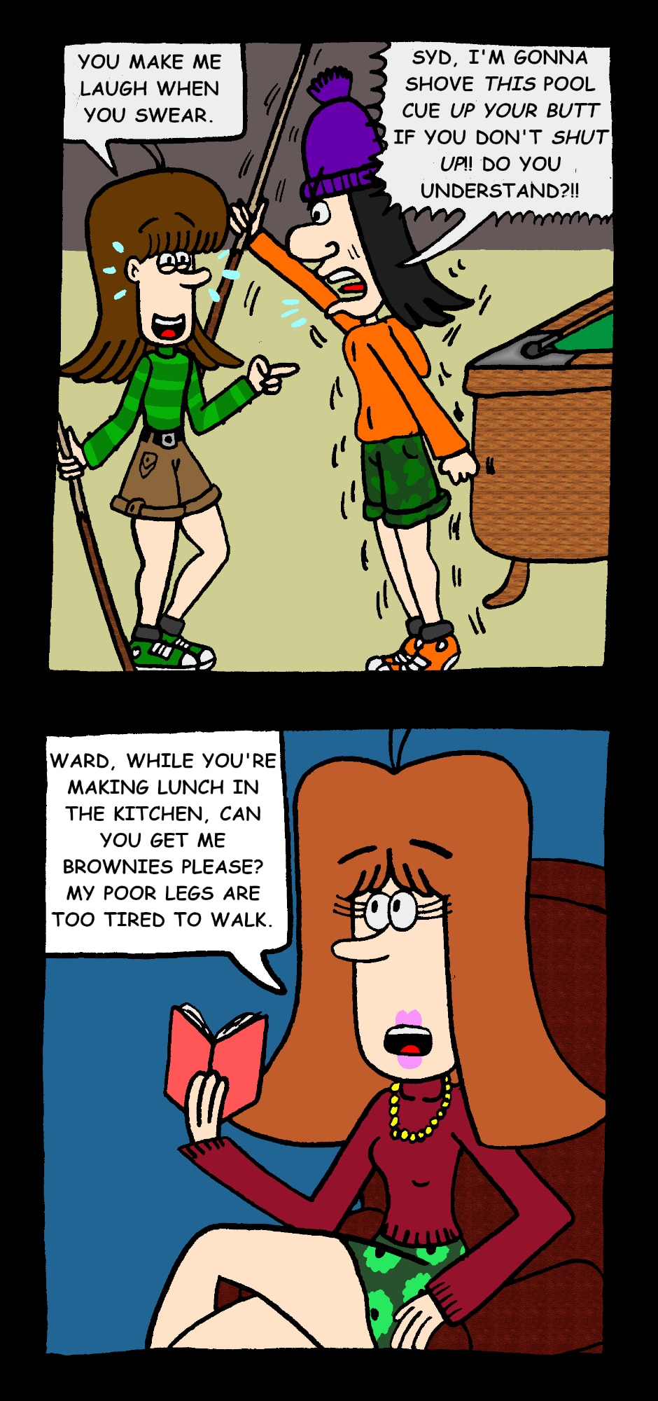 Syd's World is a comic series about Syd, his family, and his friends getting into all kinds of mischief. Syd's family includes his siblings Holly, Alex, and Grace, cousins Mark and Robert, and his parents Marie and Bruce. Craig, Austin, and Pete are Syd's friends and has a girlfriend (now cousin-in-law) named Lilly. The five of them are in a band called Marshmallow Head.