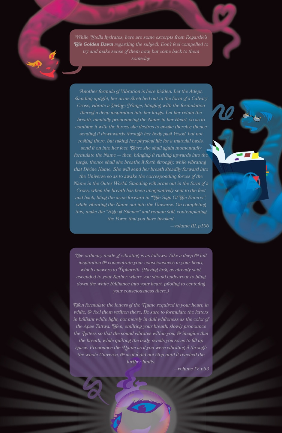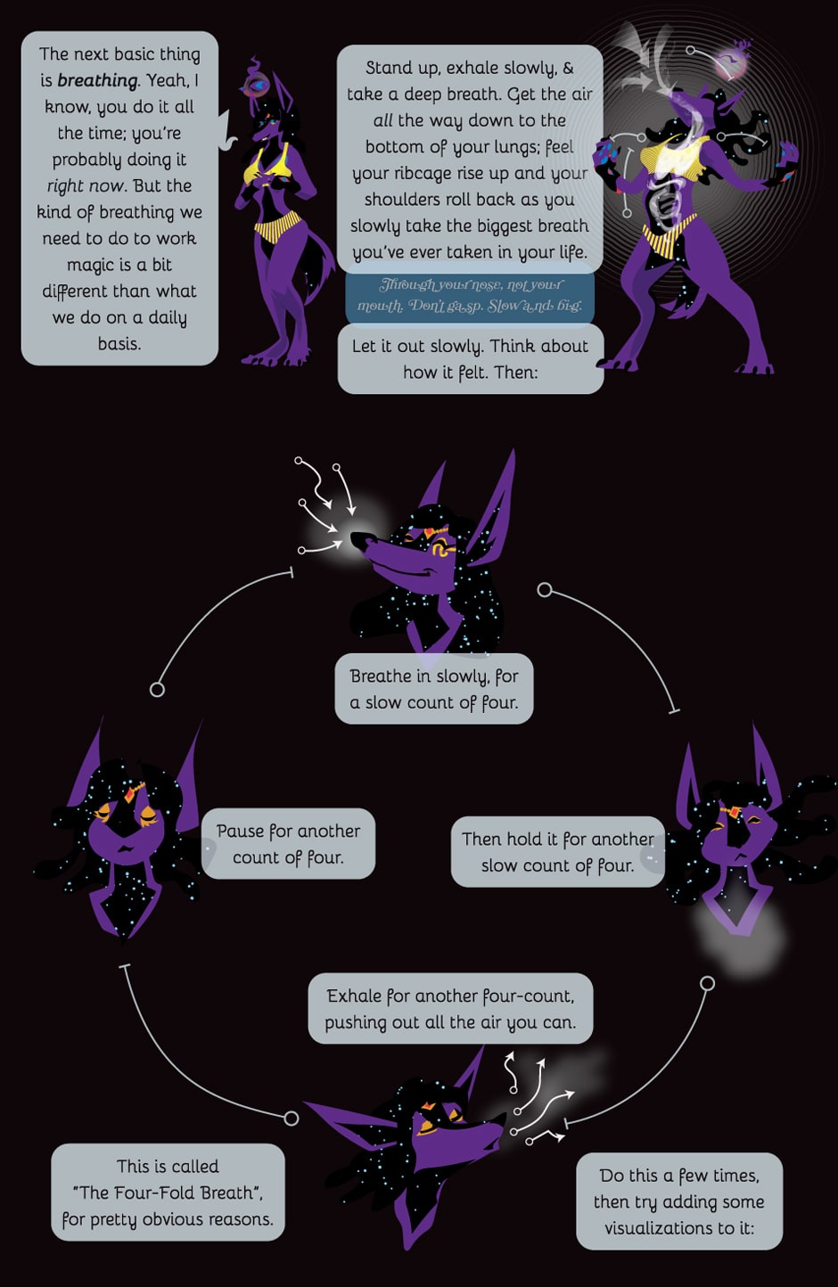 In about eighty pages of art and diagrams, Soror Fututrix Stellarum will show you the basic rituals of the famous Hermetic Order of the Golden Dawn, an influential set of 19th-century magicians who trained Aleistar Crowley... and she’ll also slip in some important words on how to breathe.