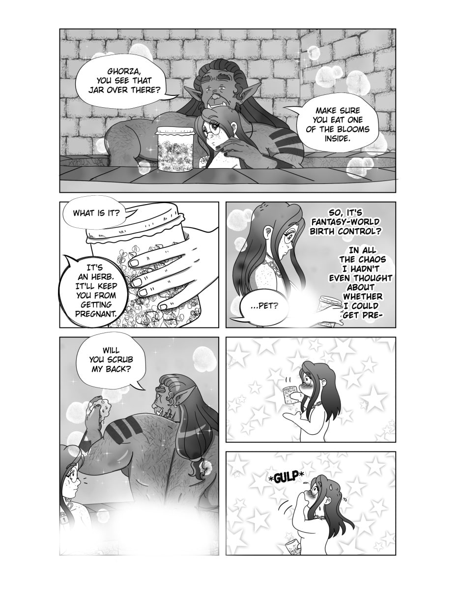 The herb she is taking was inspired by an actual plant that used to exist. It was a wild growing plant called "Silphium." It was used in cooking, perfumes and as a birth control. It was so popular an depiction of it was engraved in Roman coins. But also because of its popularity, it is believed that the Romans harvested it into extinction some time ago. I figure in a fantasy world, however, there would be something like this in existence.