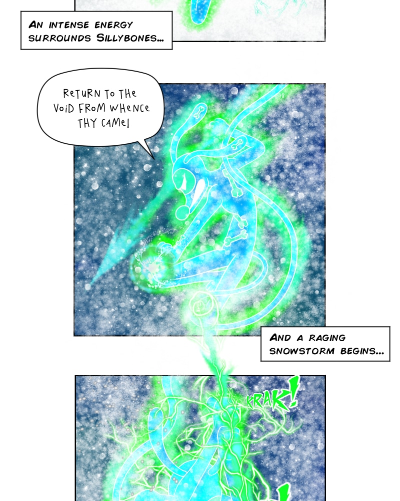 The battle in the snow heats up. Sillybones might need to use his trump card.