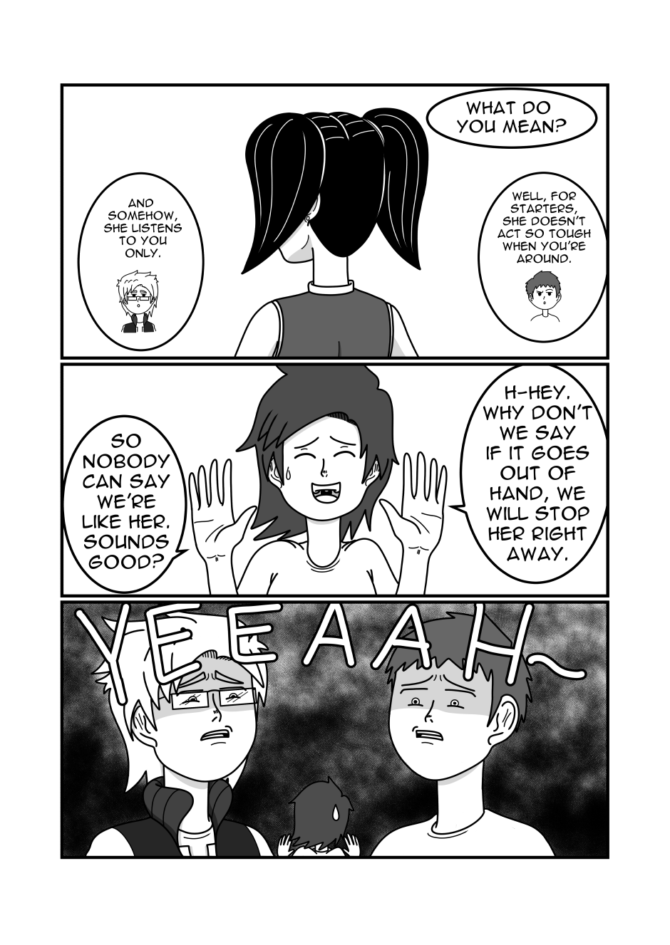 And that's the end of Chapter 3. I'm so sorry for the HUGE delay recently. It's just that my job was hard to get adjusted to the times and all the stuff I had to learn because I should become an all-rounder there. And I'm sorry for this announcement. I will go on hiatus, which doesn't mean I won't work on Story of Olivia anymore. I just won't post for a while till I get enough pages done. I hope you can understand this. Have a nice day and see you soon!^^