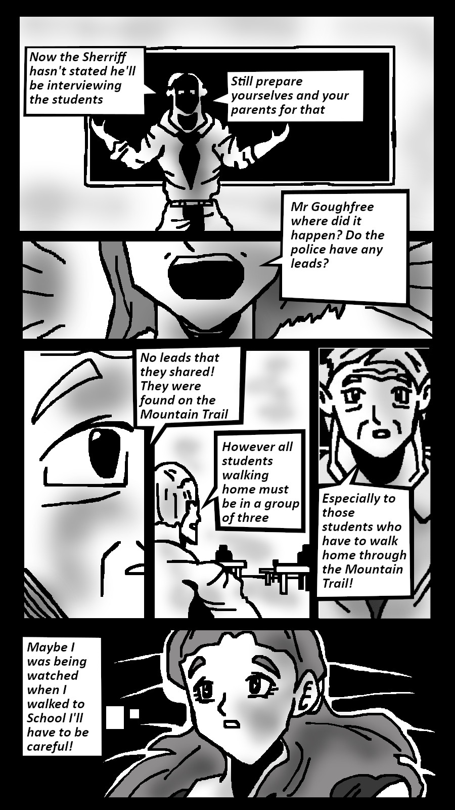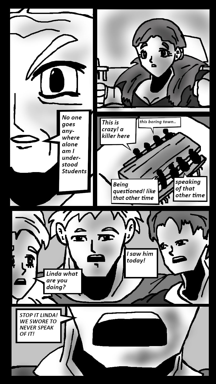 A slasher graphic Novel I have been working on A string of murders plague the once peaceful Town of Stonneville with no clues on who is doing it. except the killer seems to be targeting a specific group of teenagers. But why? what is this killers purpose and who is it
