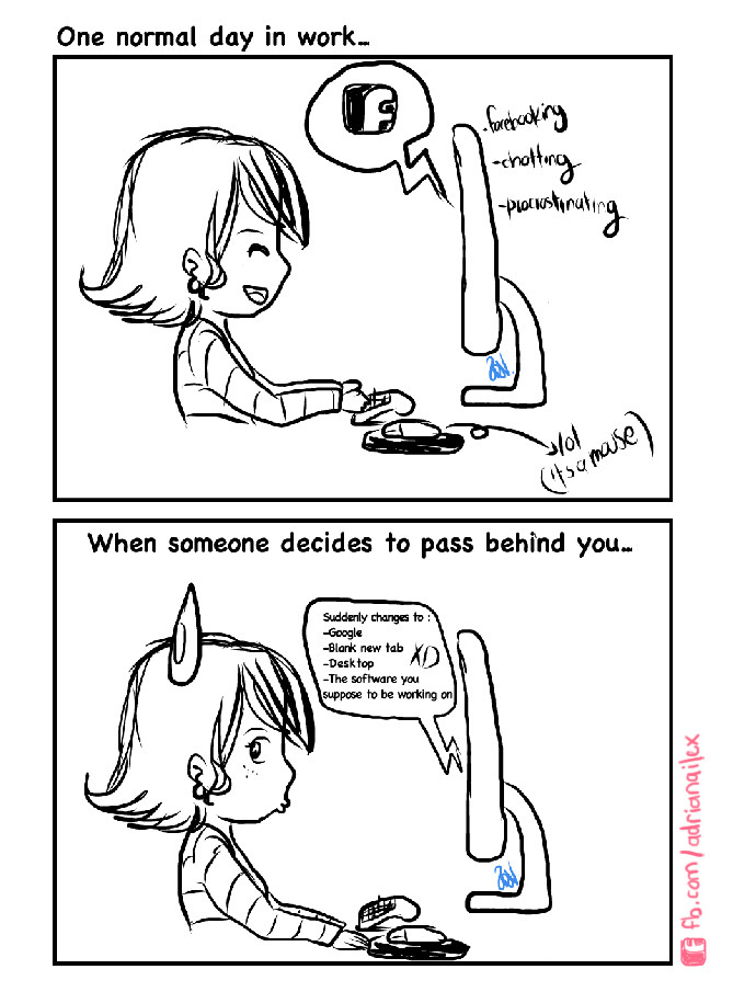 All i share with you this comic because it's very common in work (at least in mine lol) we are doing something funny or "relaxing" (you know, so many stress sometimes) and suddenly wild boss appear behind us!