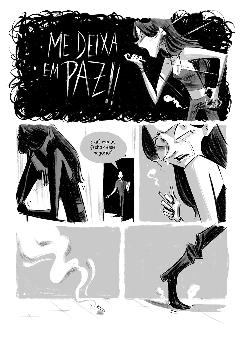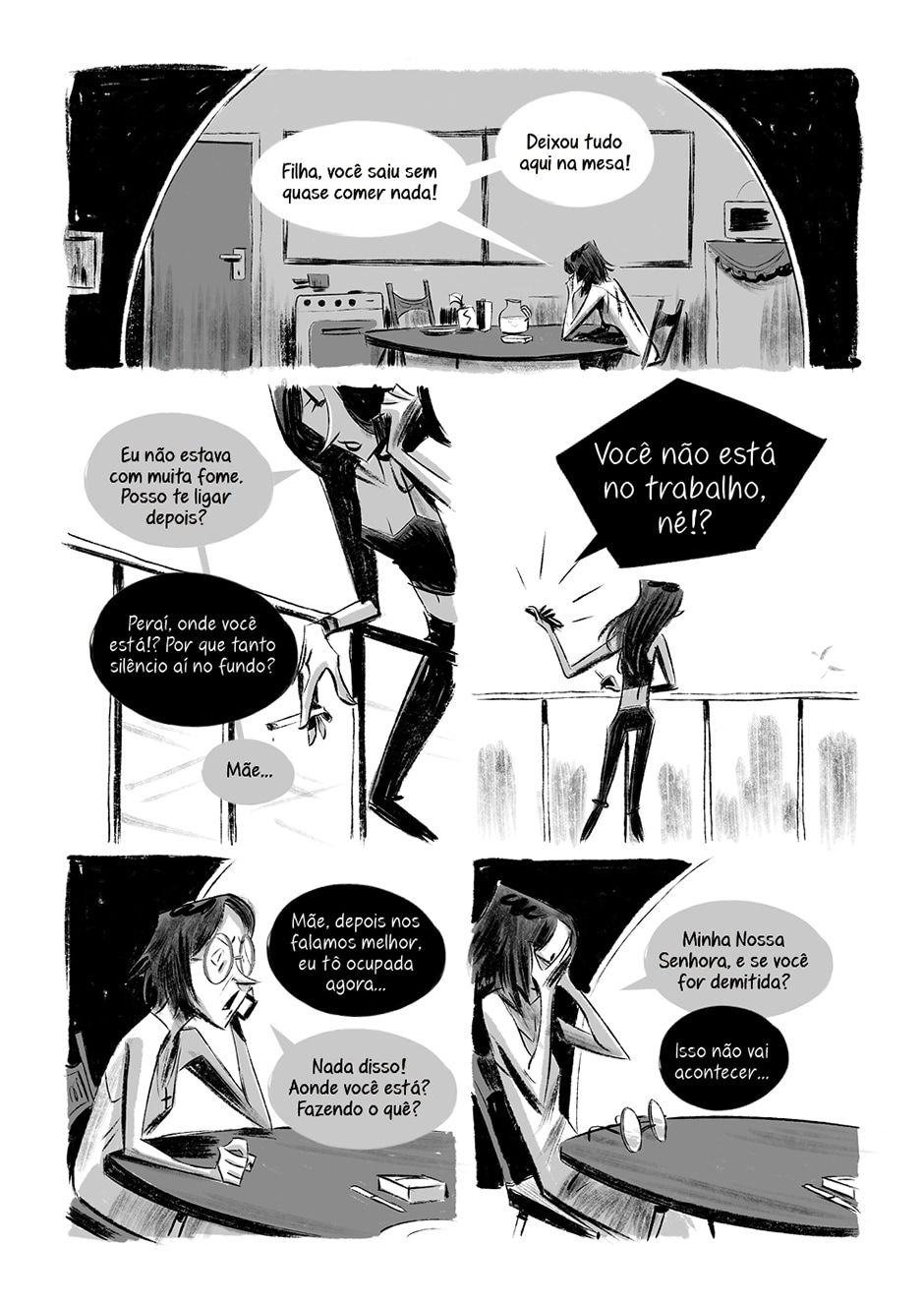 Nina interrompe a conversa com o produtor para atender uma chamada da mãe.