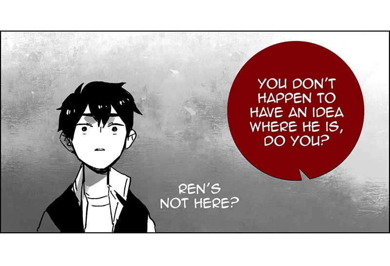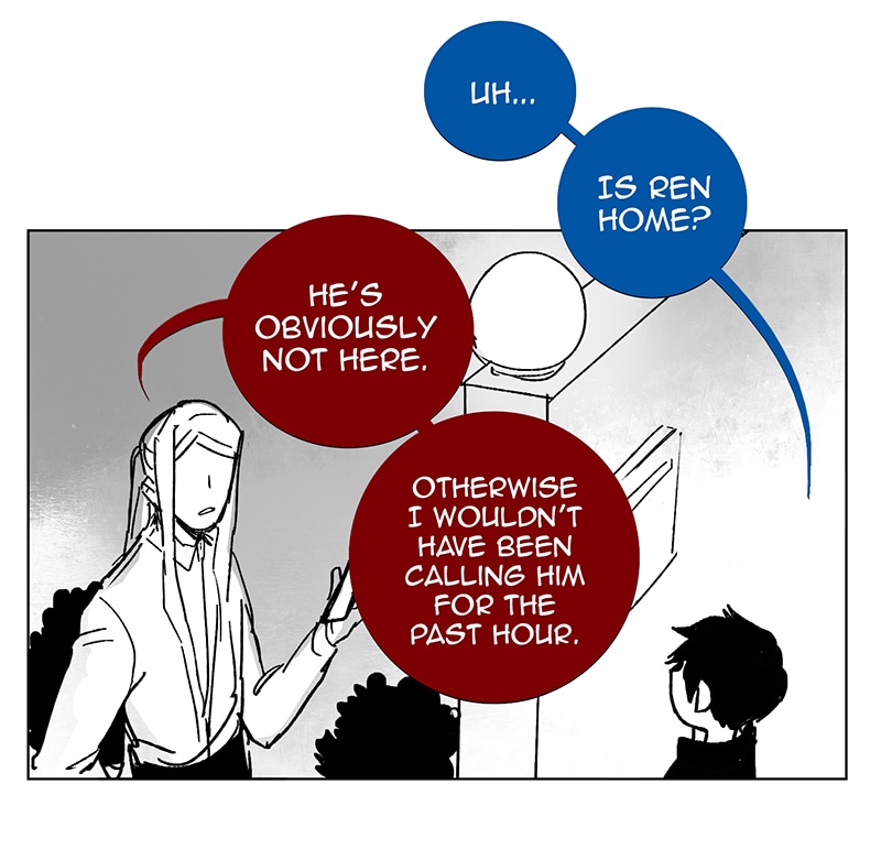 Ren isn't here. He went to Hell spa with his demon boyfriends https://www.boywhofell.com/comic/ch5825